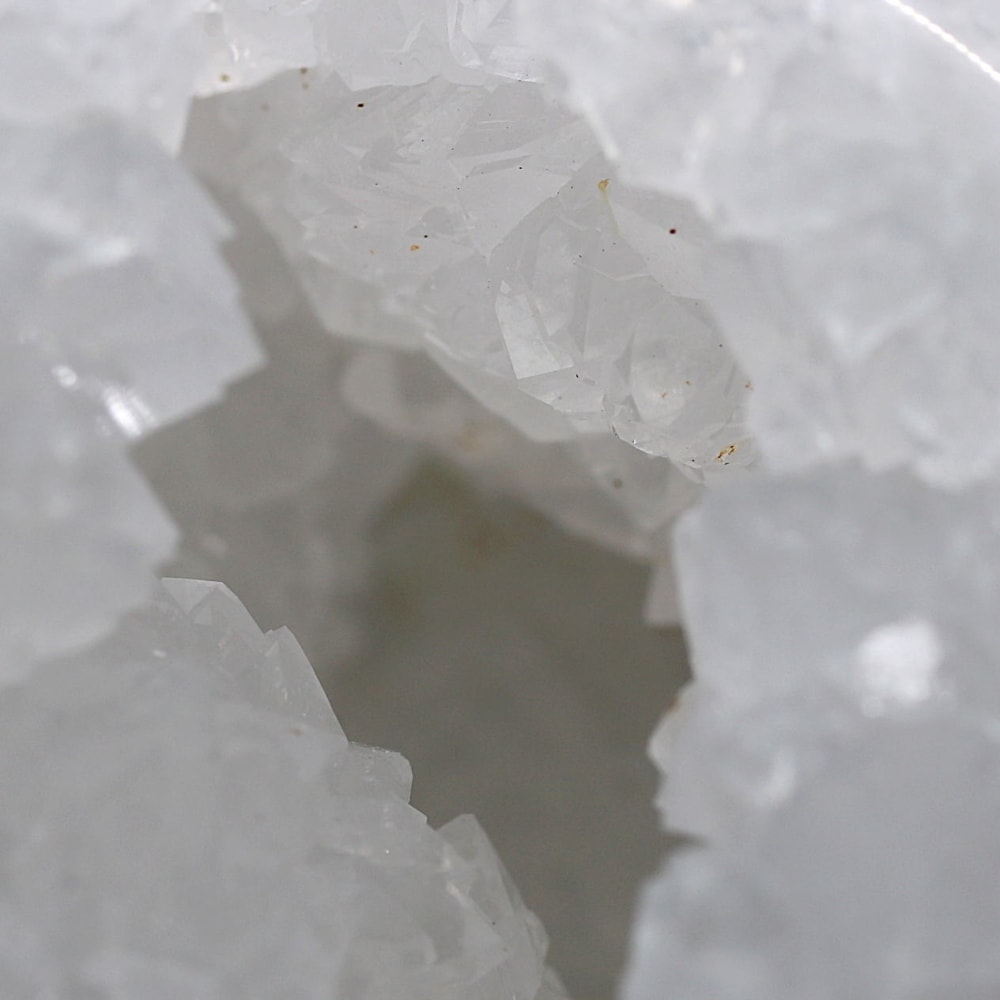 モロッコの大地から採掘されるジオードは、表面は素朴な岩石のような質感ですが、中心が空洞になっている「晶洞」という構造を持っています。