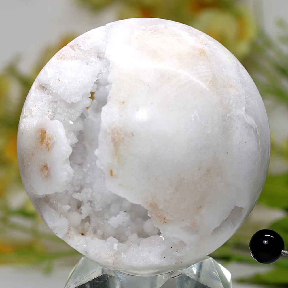 球体の中に、自然が偶然作り出した開口部を持つこの石は、“福を招き入れる縁起物” として非常に人気があります。