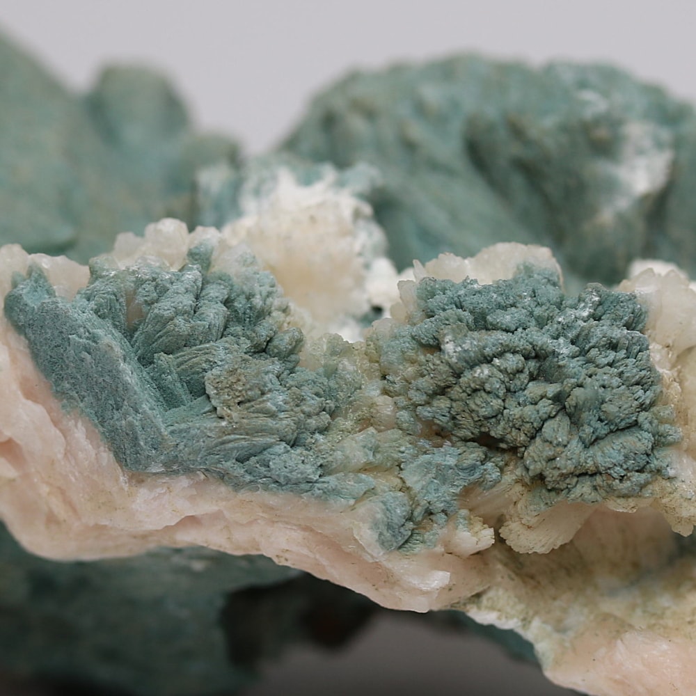 ご覧のお品もその魅力をしっかりと感じられる逸品で、ヒューランダイト(輝沸石)とスティルバイト(束沸石)が絶妙に混ざり合う共生ディテールは、硬い鉱物でありながら、どこか柔らかな印象を受けます。