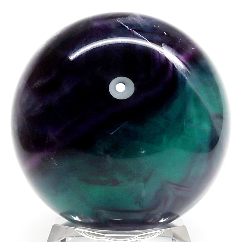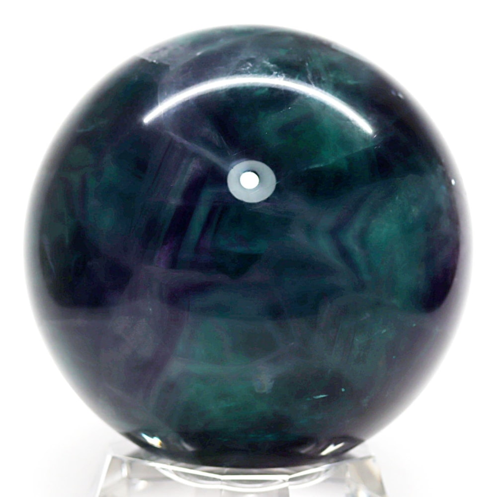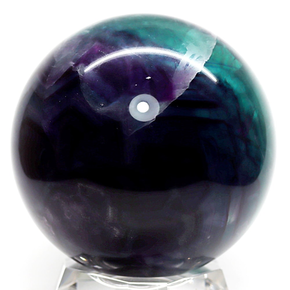 マルチカラーのグラデーションとフローライト特有の内部構造をしっかりとご覧いただける美しい丸玉となっております。