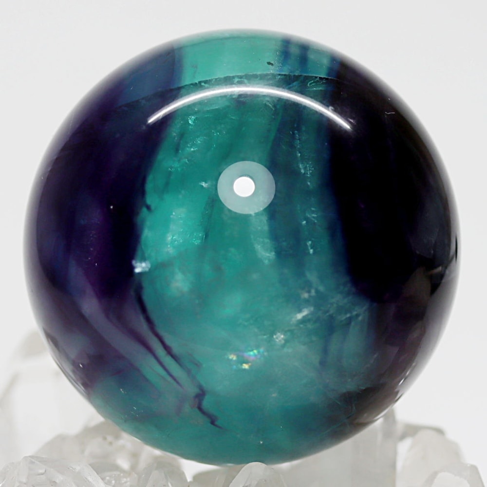 マルチカラーのグラデーションとフローライト特有の内部構造をしっかりとご覧いただける美しい丸玉となっております。