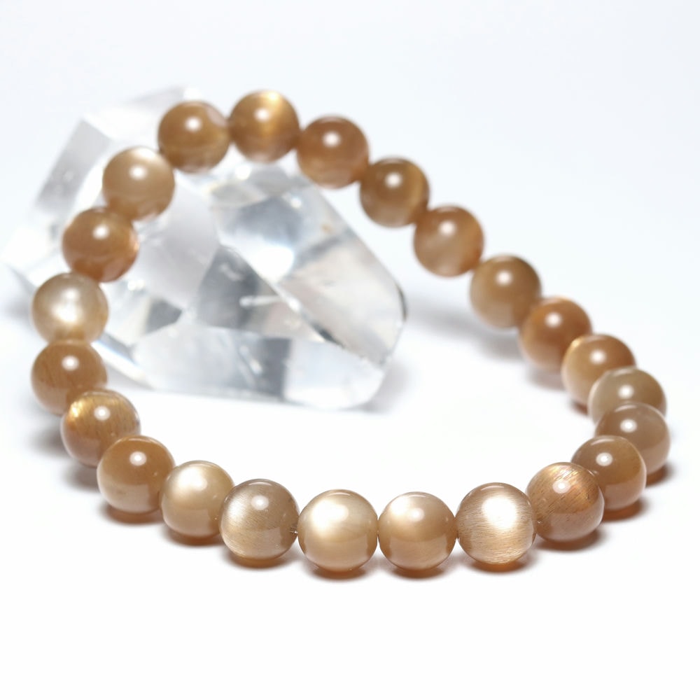 [高品質]ゴールデンサンムーンストーンブレスレット(約8.5mm玉)¥14,600クイックガイド送料