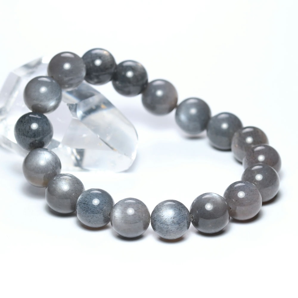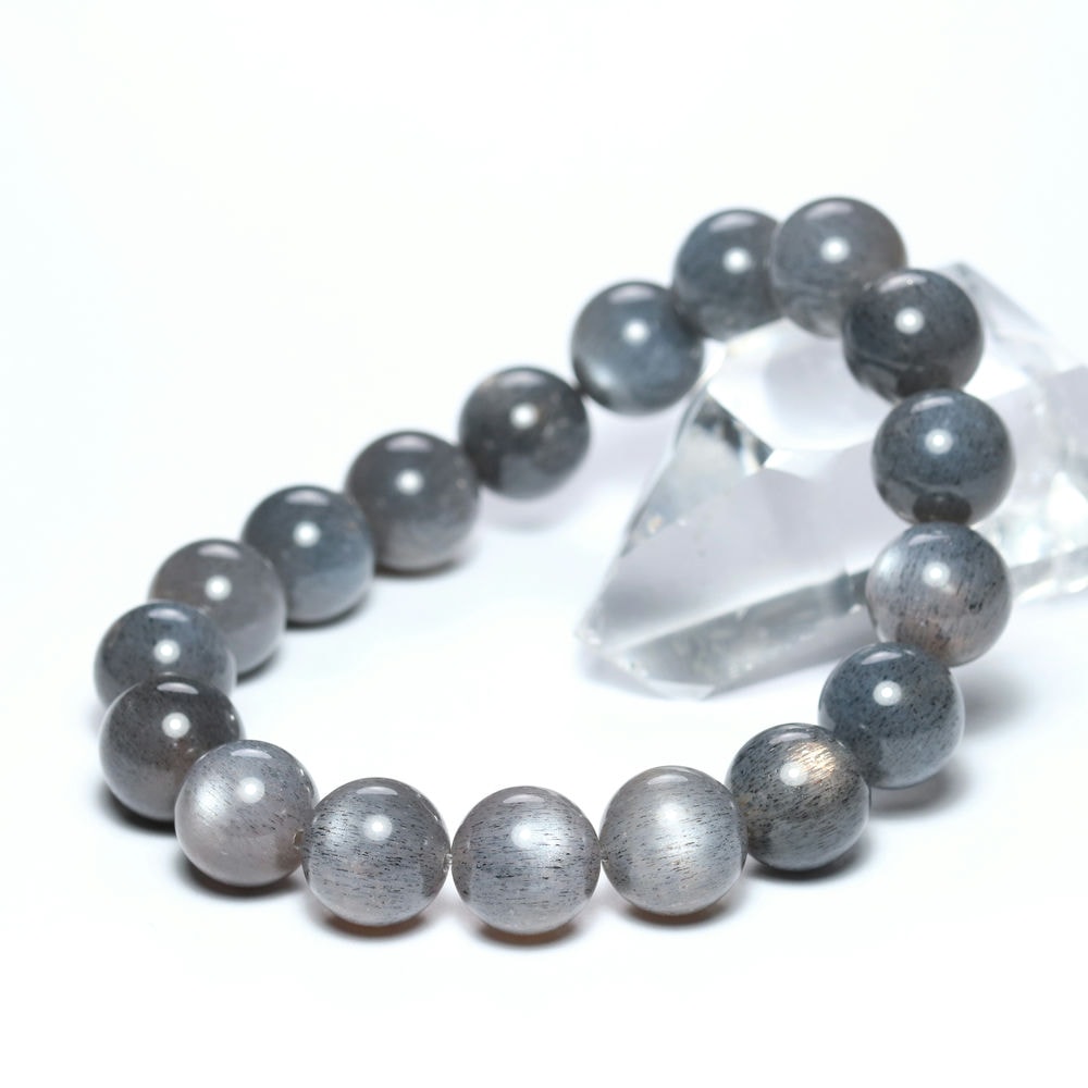 [高品質]ライトグレーサンムーンストーンブレスレット(約11.5mm玉)¥11,800クイックガイド送料