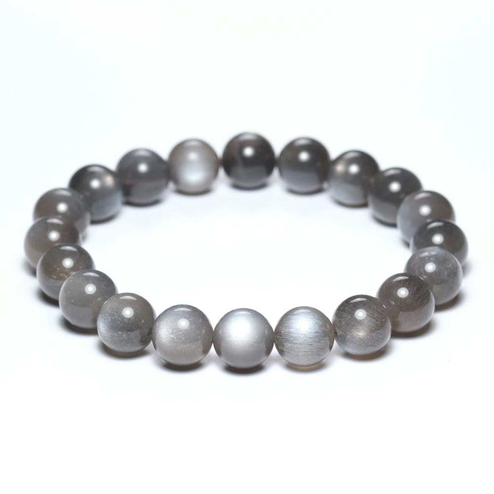 [高品質]ライトグレーサンムーンストーンブレスレット(約10mm玉)