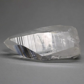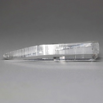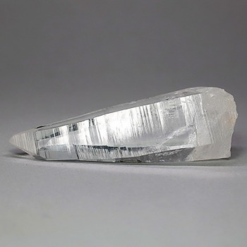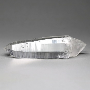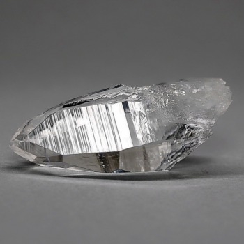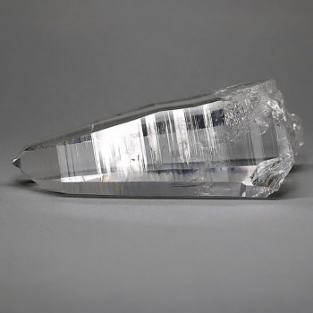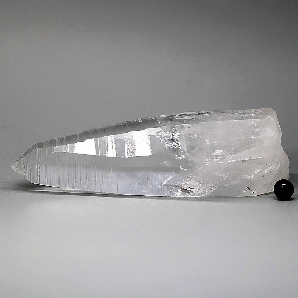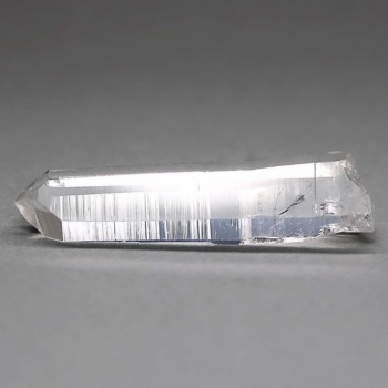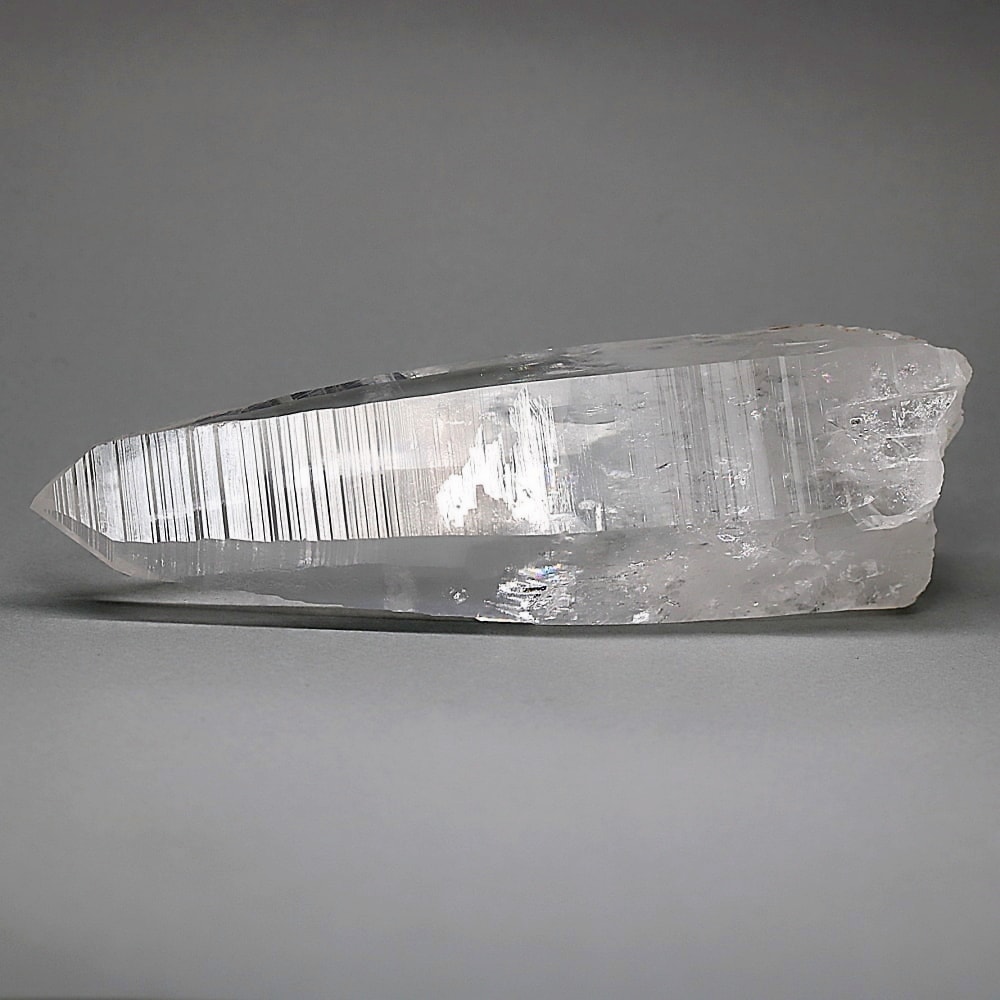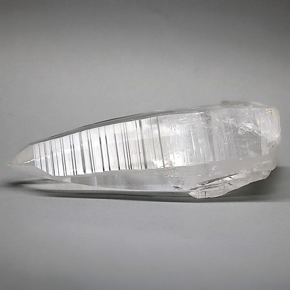 氷のように澄みきった透明度を持つ結晶は、まるで人の手で整えられたかのような端正なシルエットを備えており、ファセット欠損も極めて少ない洗練されたディテールが見事です。