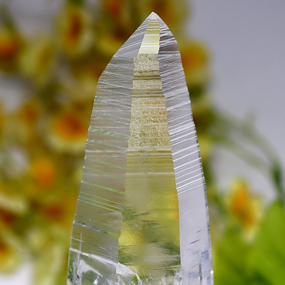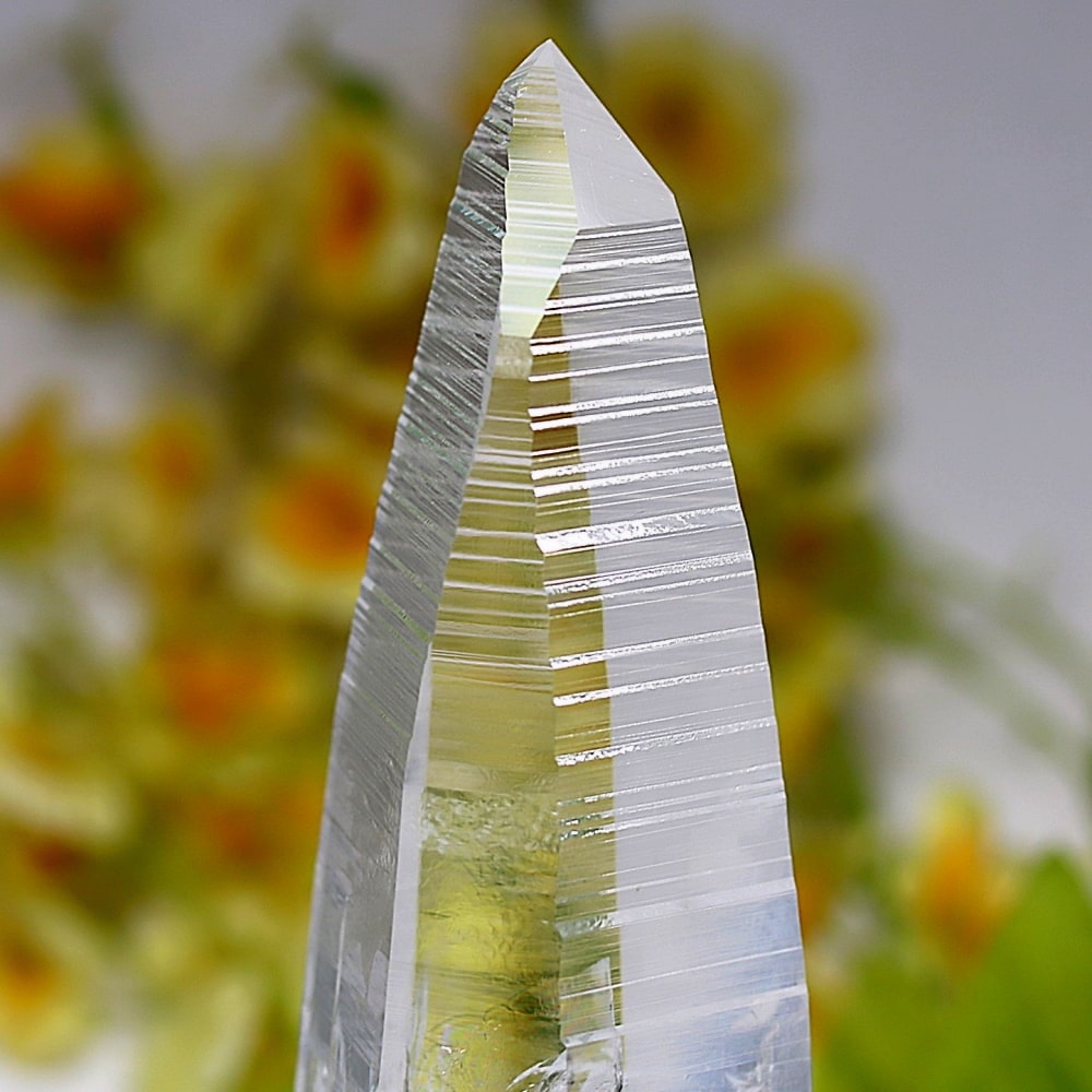 結晶面には、目視でもはっきり確認できるレムリアンシードを象徴する “レムリアンリッジ(バーコード状の縞条線)”が刻まれており、その凛々しく神秘的な姿に思わず見惚れてしまいます。
