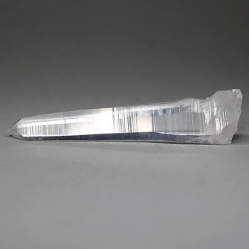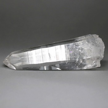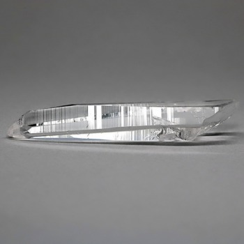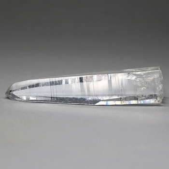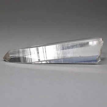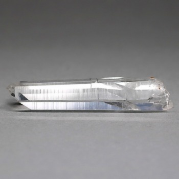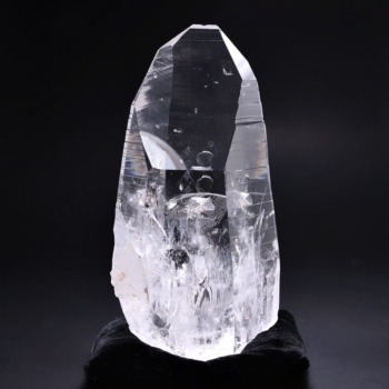 氷のように澄みきった透明度を持つ結晶は、まるで人の手で整えられたかのような端正なシルエットを備えており、ファセット欠損も極めて少ない洗練されたディテールが見事です。