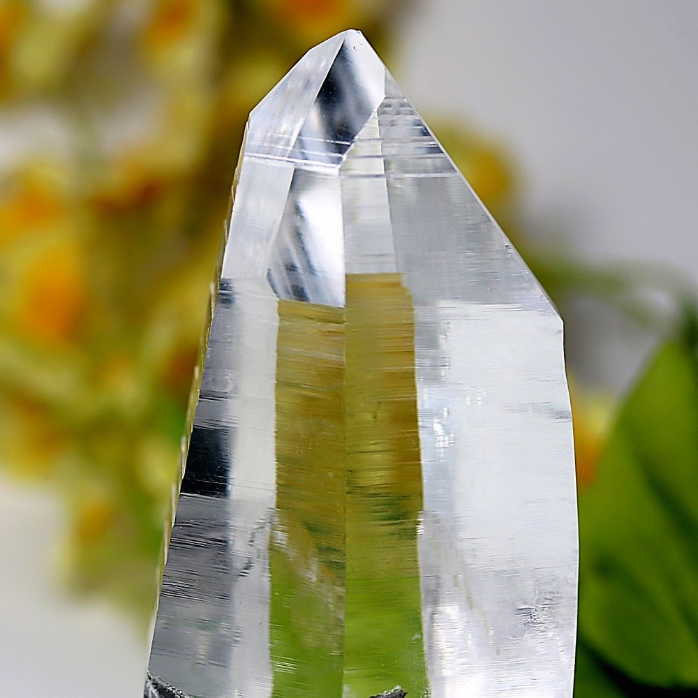 また、透明度抜群の結晶は照りも素晴らしく、角度によって柱面にプリズム効果(レインボー)が現れ、その存在感を一層際立たせております。