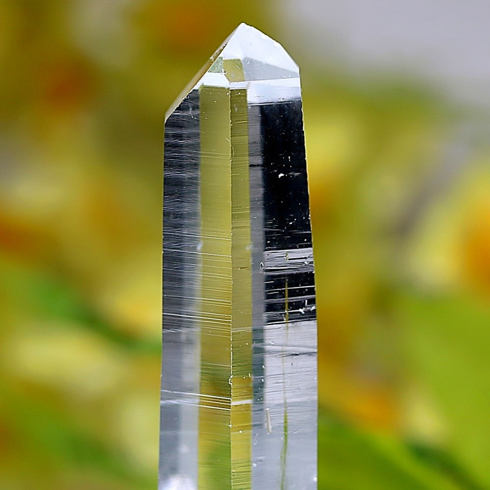 また、透明度抜群の結晶は照りも素晴らしく、角度によって柱面にプリズム効果(レインボー)が現れ、その存在感を一層際立たせております。