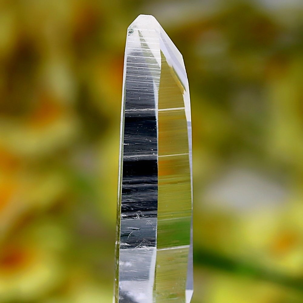 また、透明度抜群の結晶は照りも素晴らしく、角度によって柱面にプリズム効果(レインボー)が現れ、その存在感を一層際立たせております。