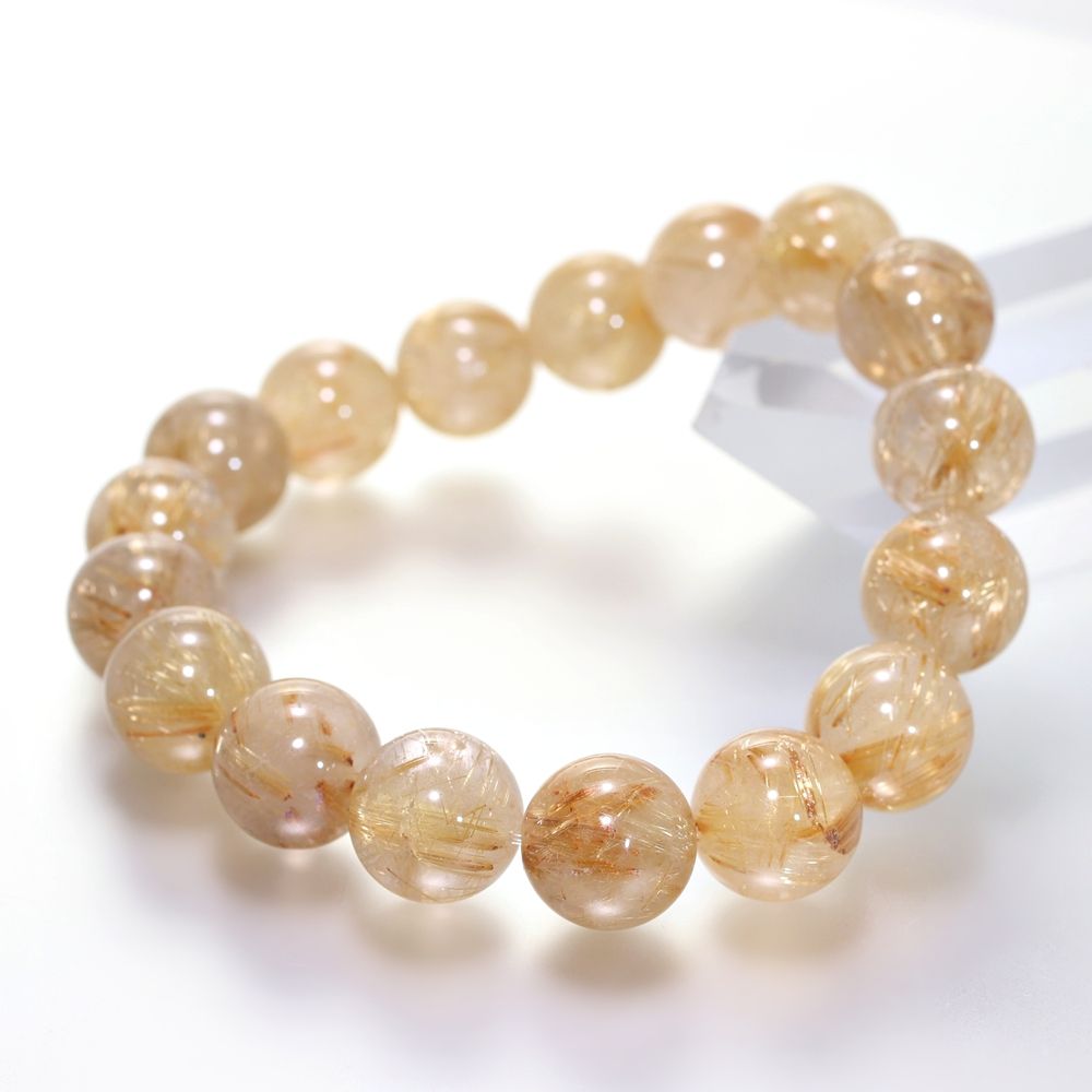 [特別価格/3A+]ゴールドルチルクォーツブレスレット(約12.5mm玉)¥49,300クイックガイド送料