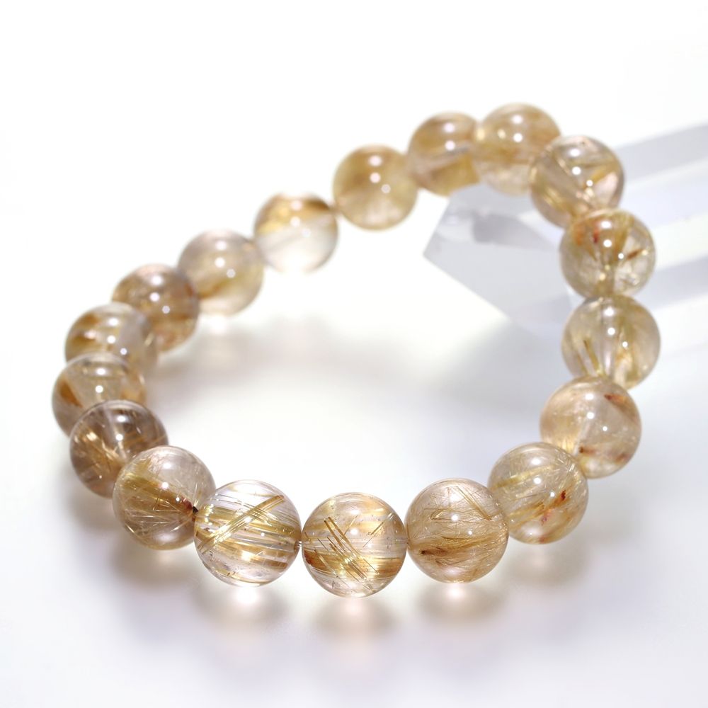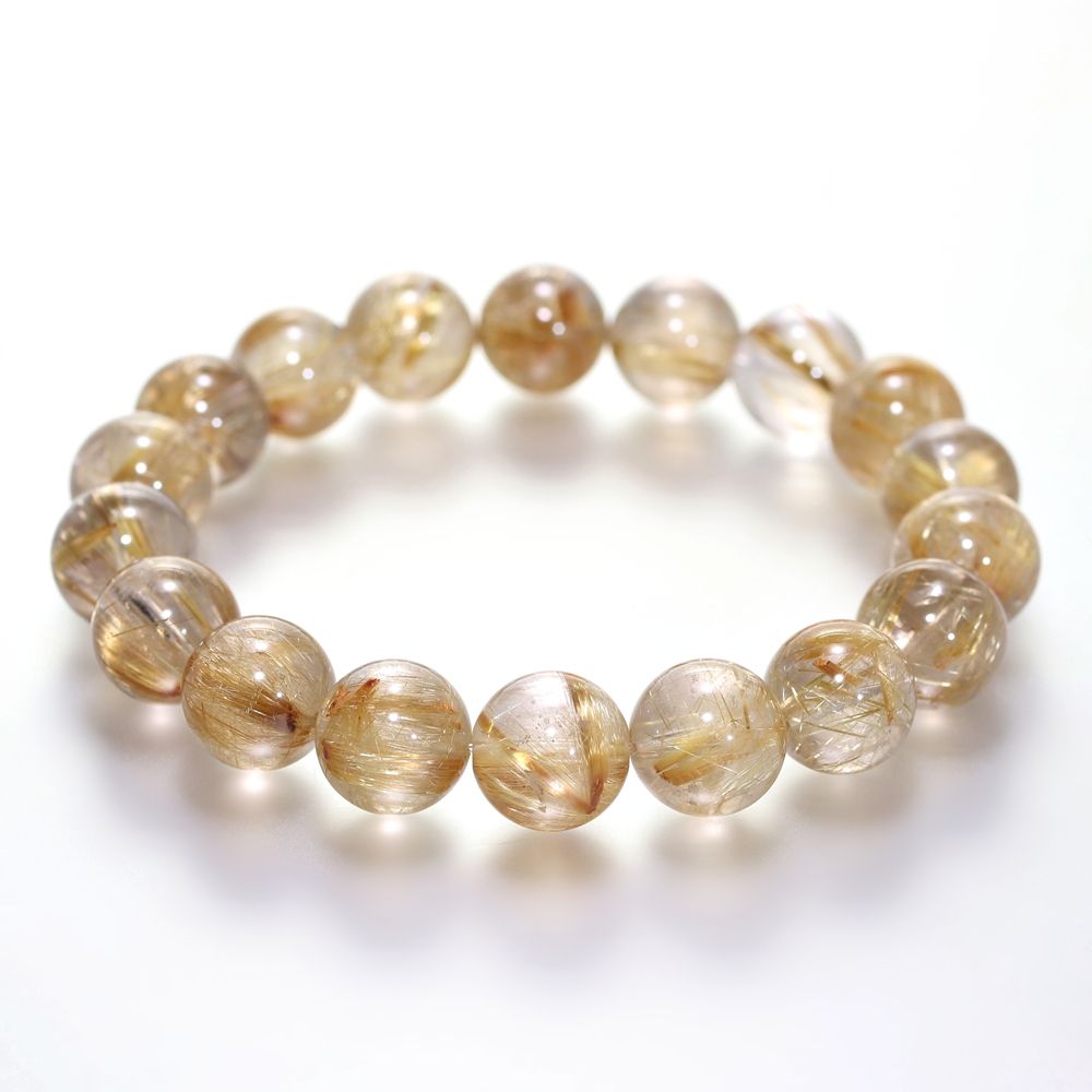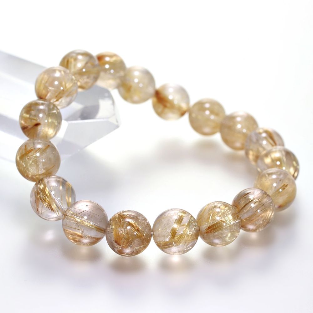 [高品質+]ゴールドルチルクォーツブレスレット(約11.5mm玉)