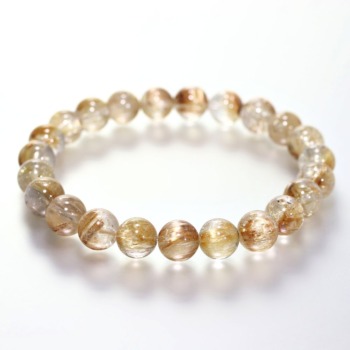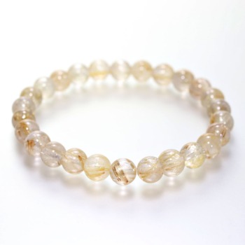 こちらのタイプは、水晶透明度は感じられませんが、ルチル針状結晶は一定量内包されたゴールドルチルクォーツブレスレットです。