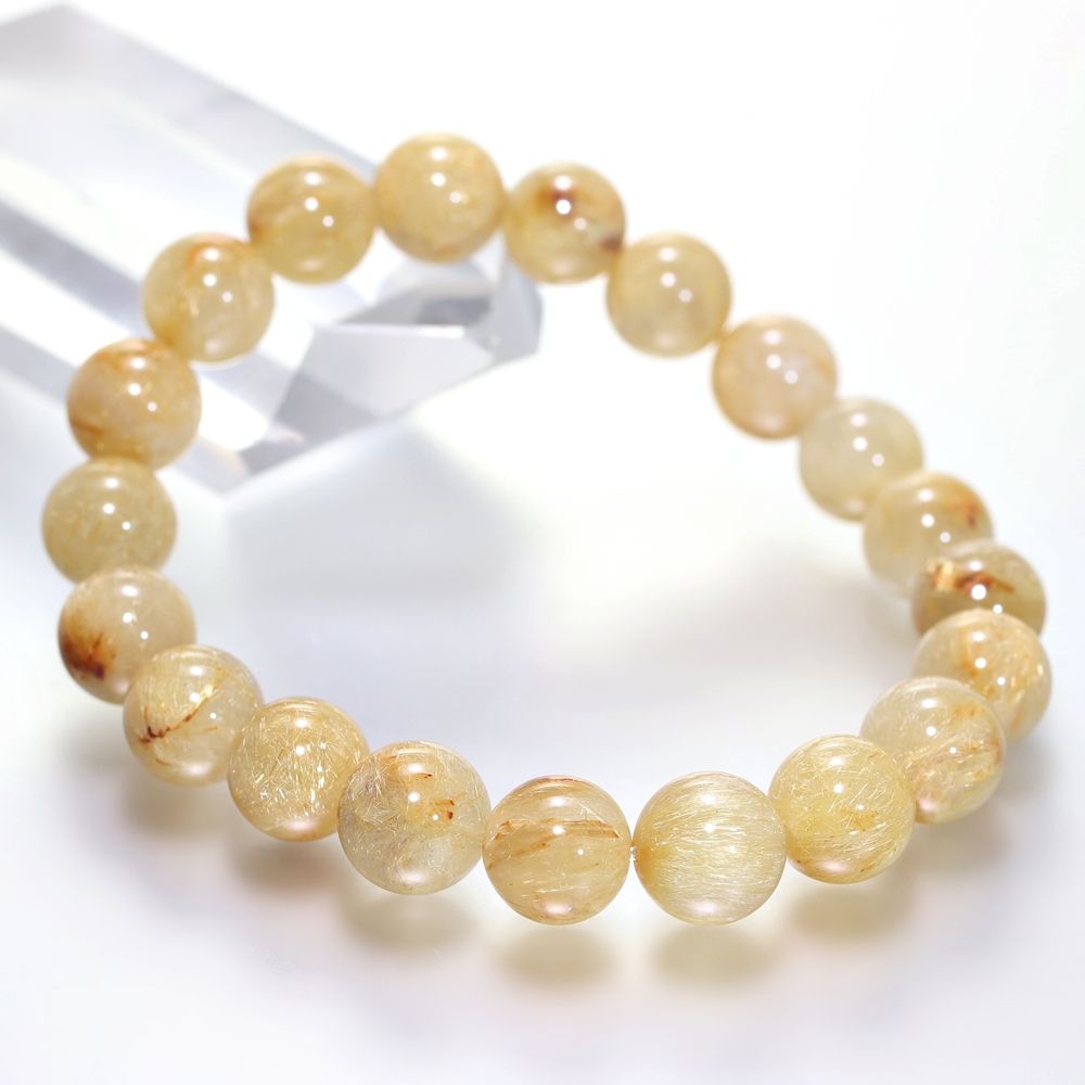 [特別価格/3A]ゴールドルチルクォーツブレスレット(約10mm玉)¥23,100クイックガイド送料