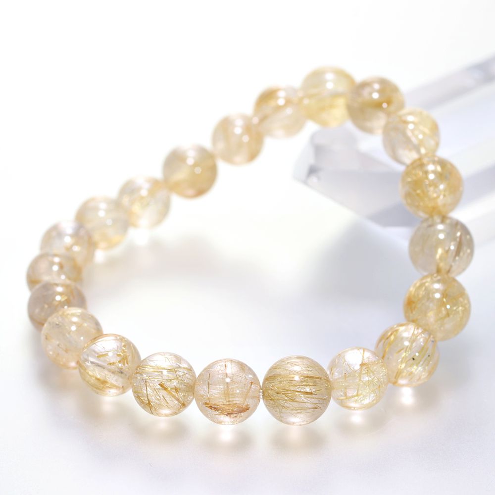 [高品質]ゴールドルチルクォーツブレスレット(約9.5mm玉)¥59,000クイックガイド送料