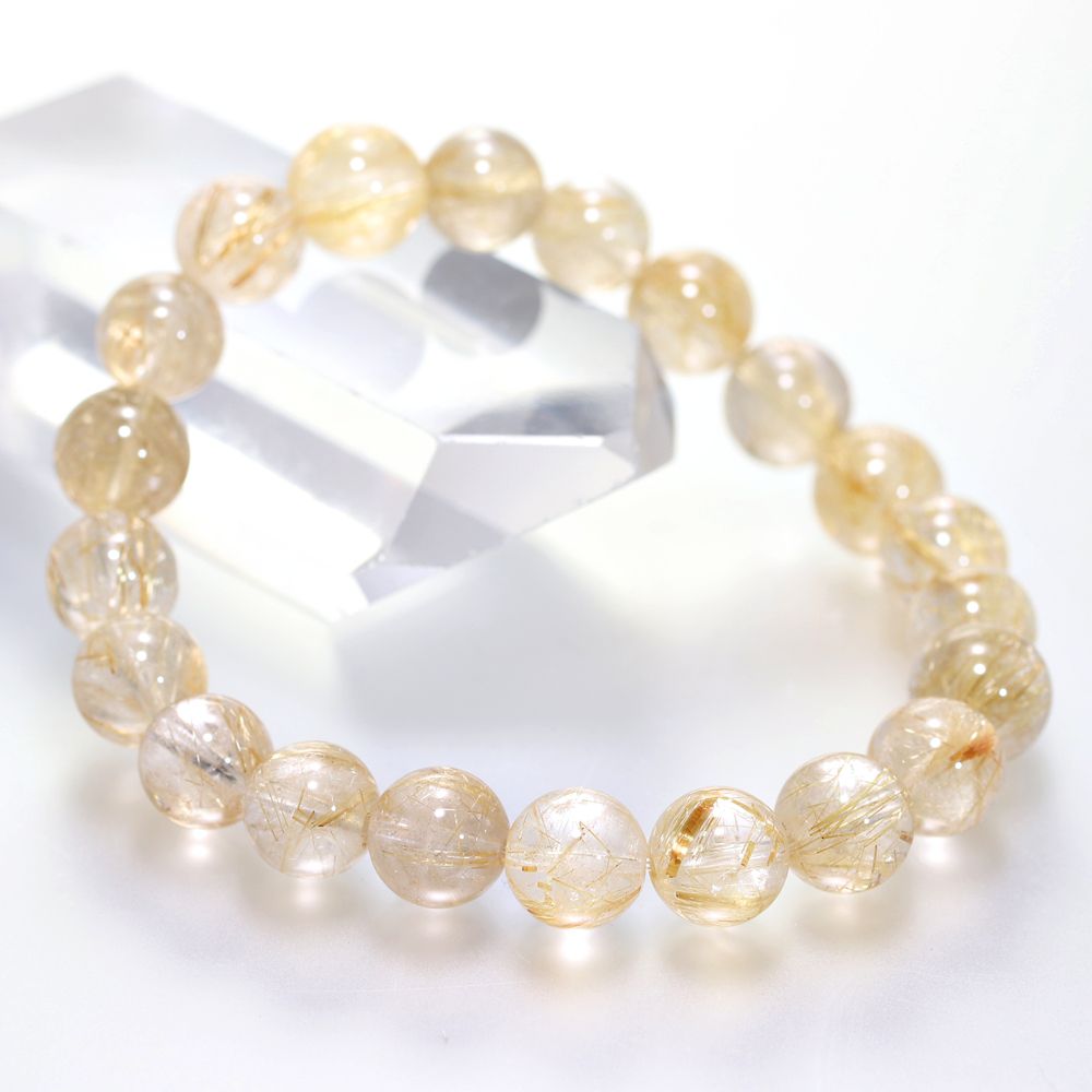 [高品質]ゴールドルチルクォーツブレスレット(約9.5mm玉)