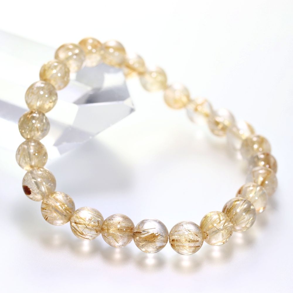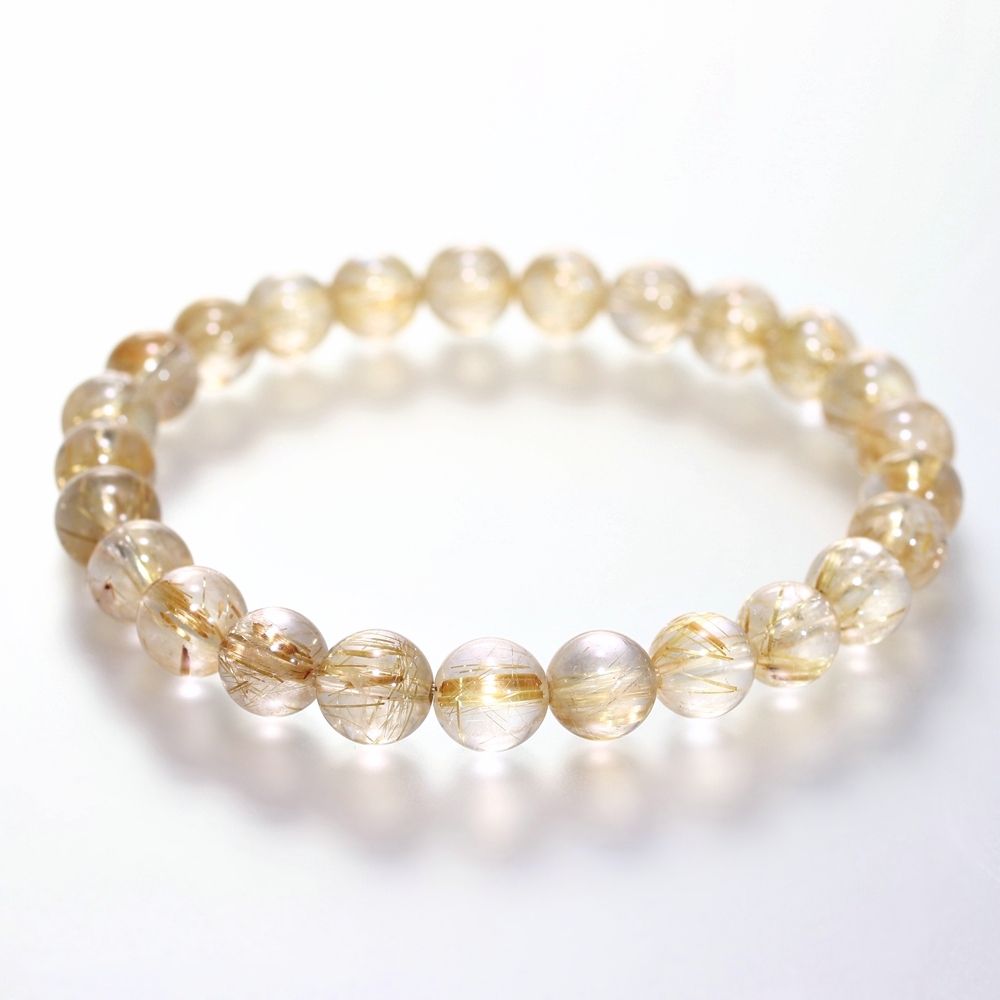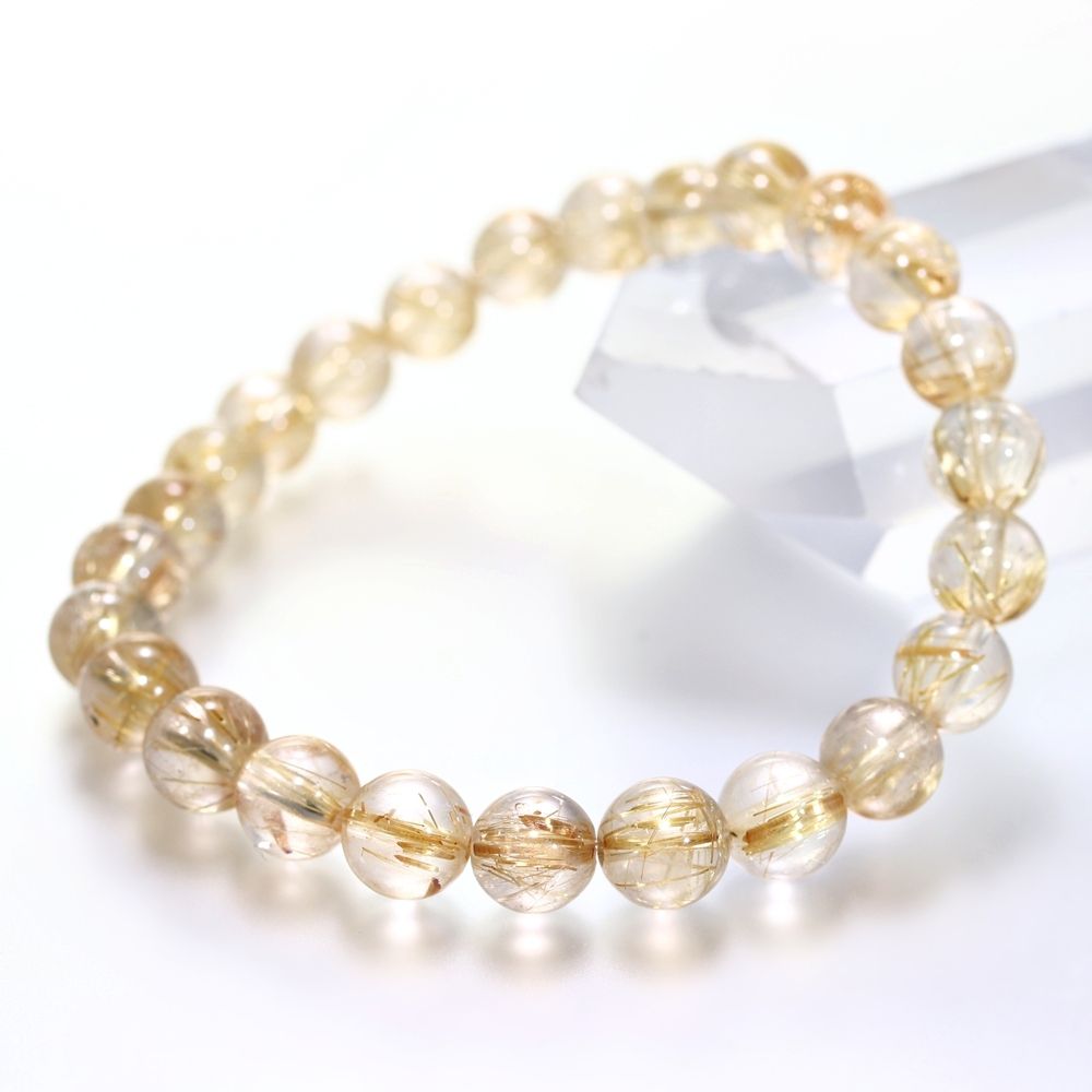 [高品質+]ゴールドルチルクォーツブレスレット(約7.5mm玉)
