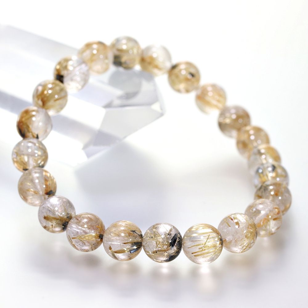[特別価格/3A]太陽放射ルチルクォーツブレスレット(約9mm玉)¥14,300クイックガイド送料