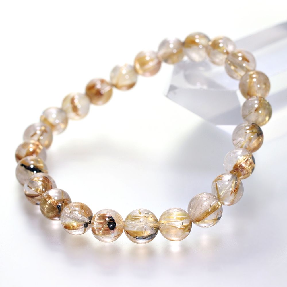 [特別価格/3A]太陽放射ルチルクォーツブレスレット(約7.5mm玉)