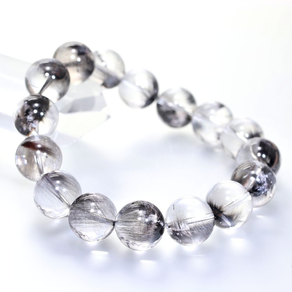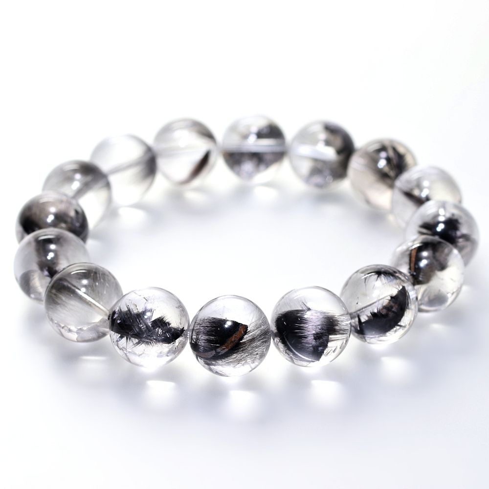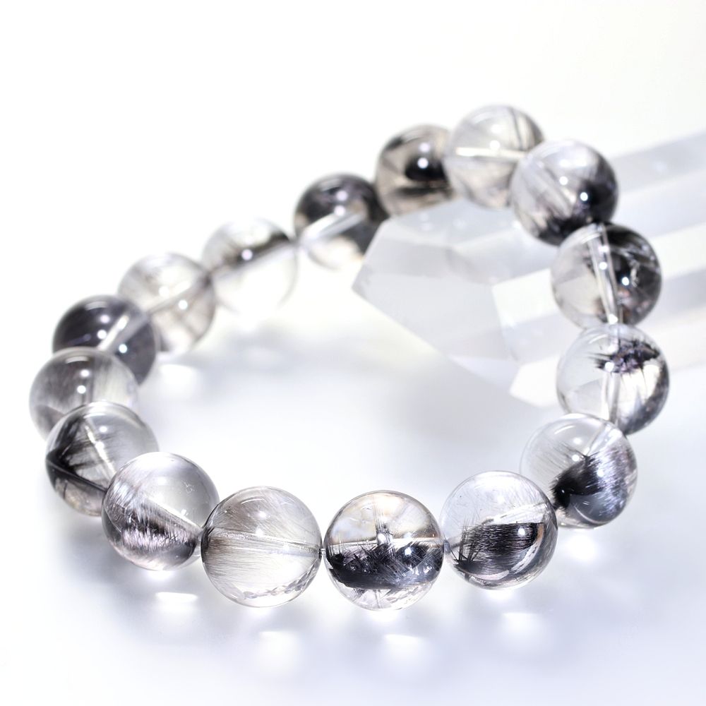 [高品質+]ブラックプラチナルチルクォーツブレスレット(約13mm玉)