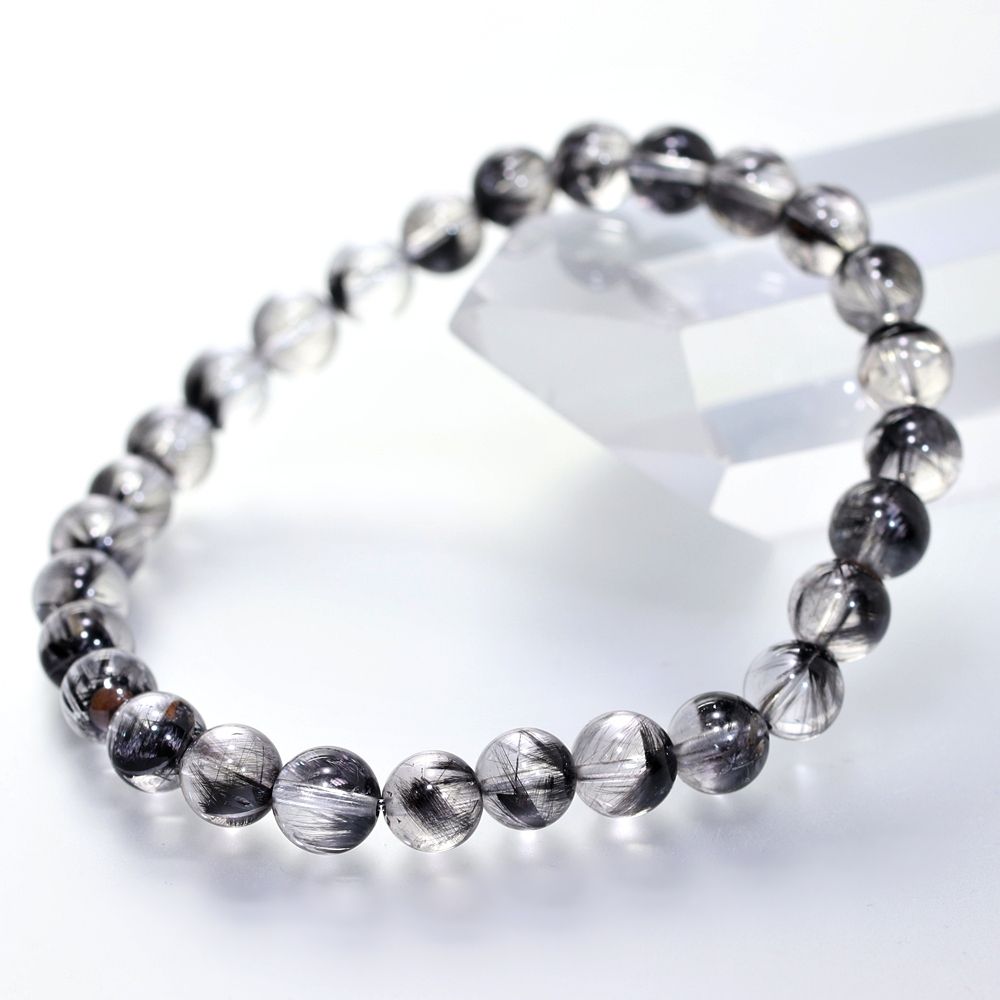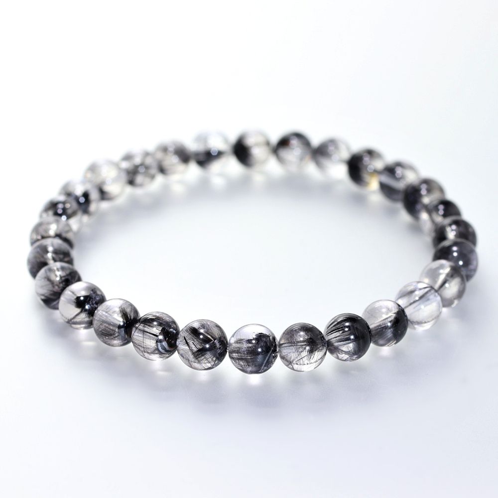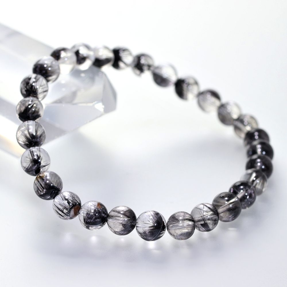 ブラックプラチナルチルクォーツブレスレットの、艶やかでシルキー、そして重厚感ある黒銀の輝きは、他のルチルクォーツでは決して到達し得ない、格別の存在感と満足感を得られるでしょう。
