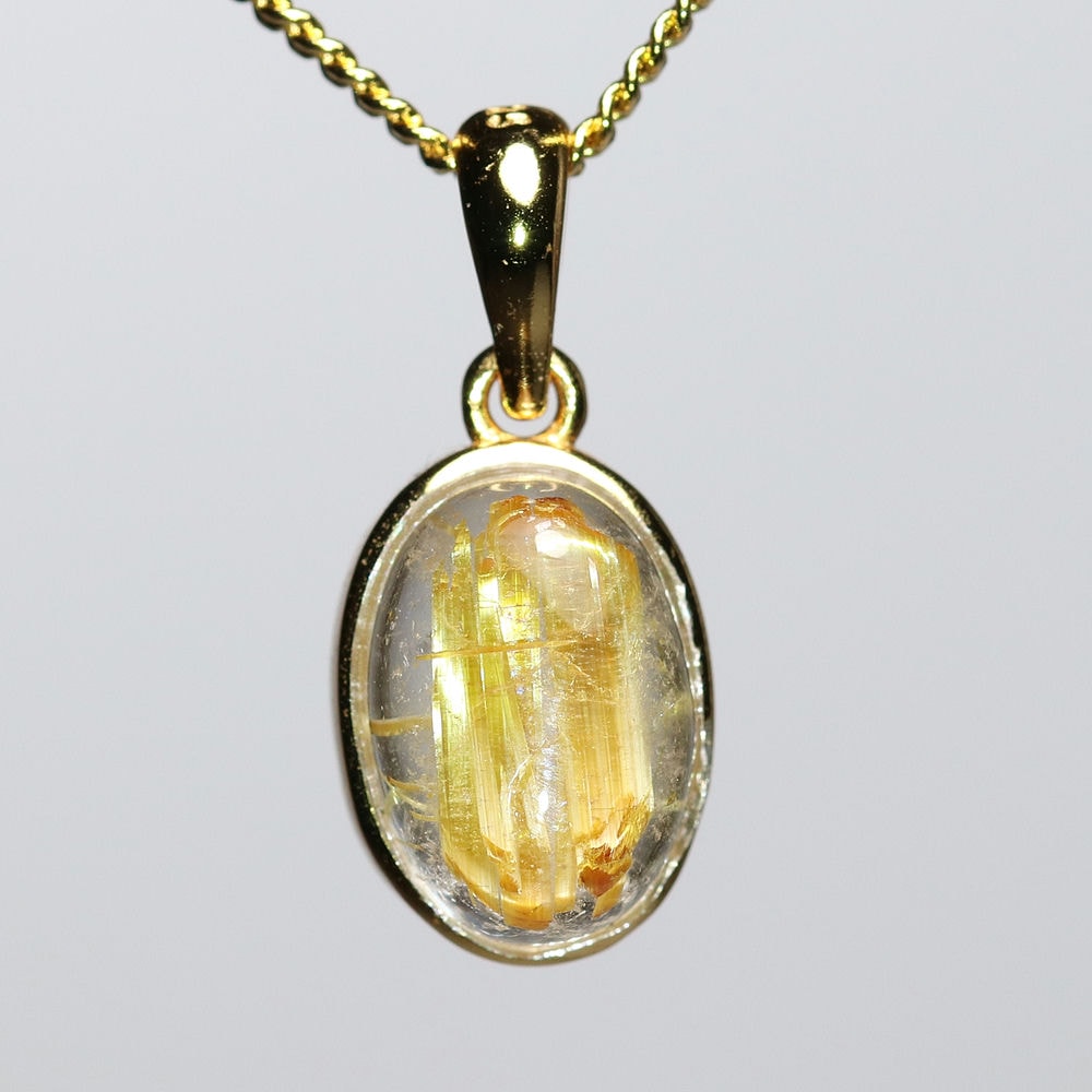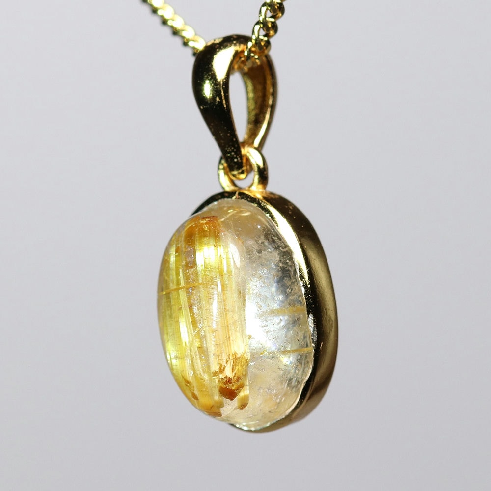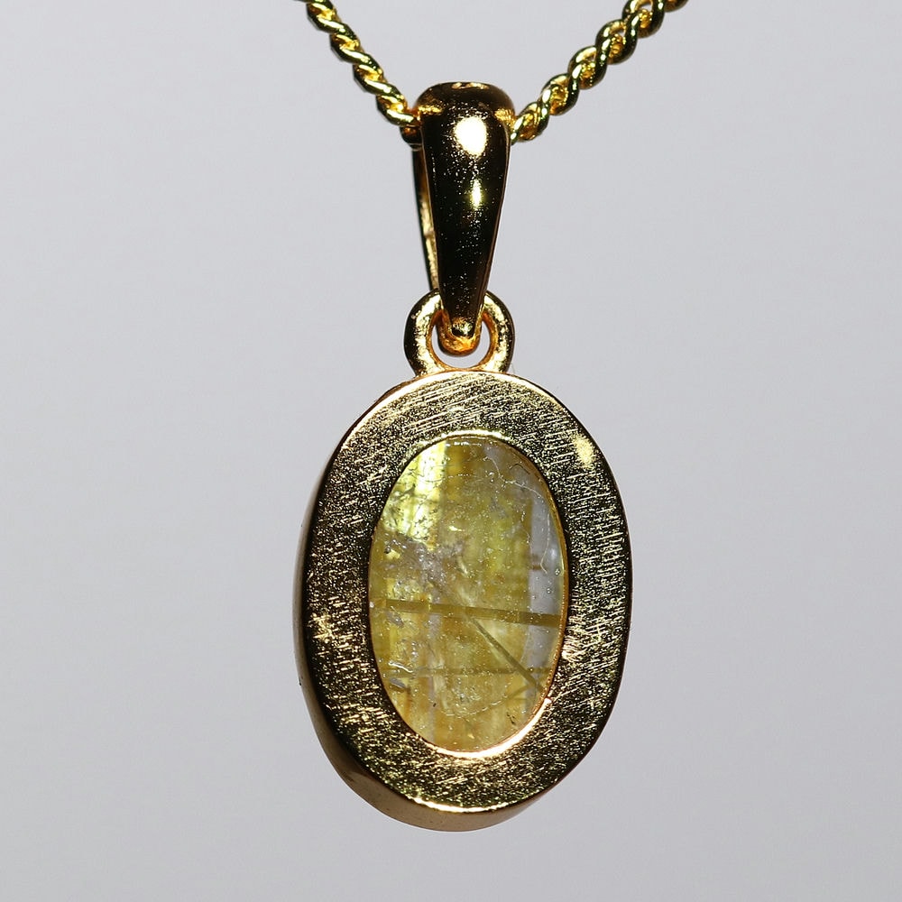 オーバルシェイプの美しいタイチンルチルクォーツルースを使用した、【高品質】ペンダントトップ(ネックレストップ)でございます。