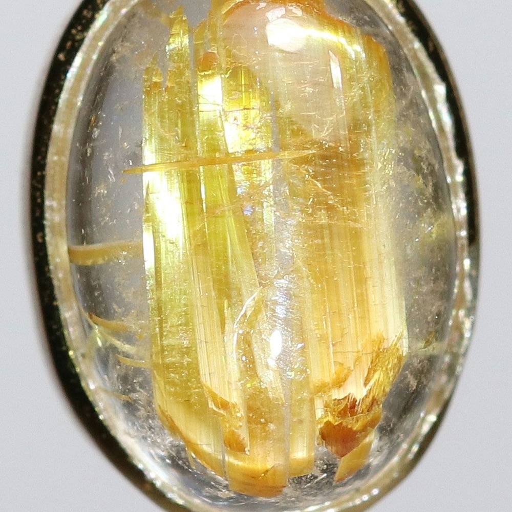 ルチルの金色に、重厚感あるゴールドフレームが上品に溶け合い、華やかで気品あふれる印象が際立つ仕上がりです。