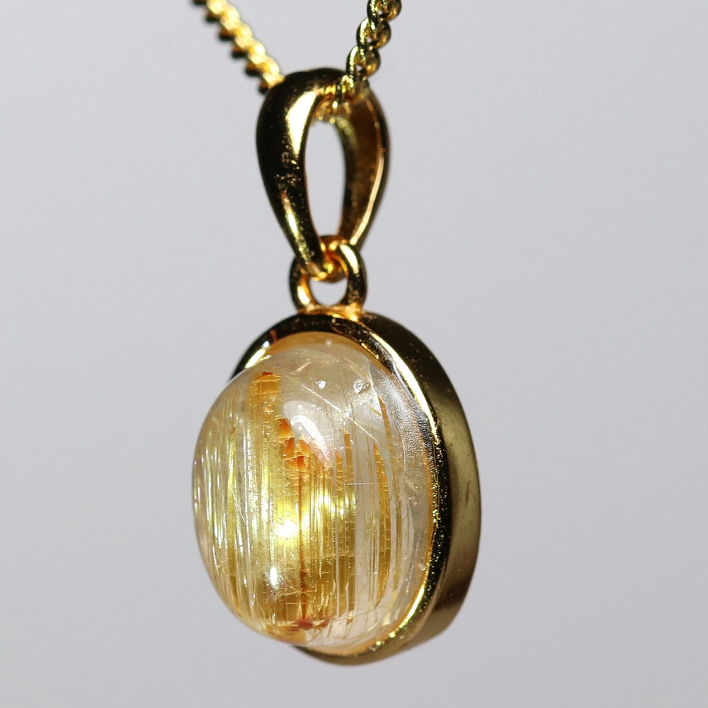 オーバルシェイプの美しいタイチンルチルクォーツルースを使用した、【高品質】ペンダントトップ(ネックレストップ)でございます。