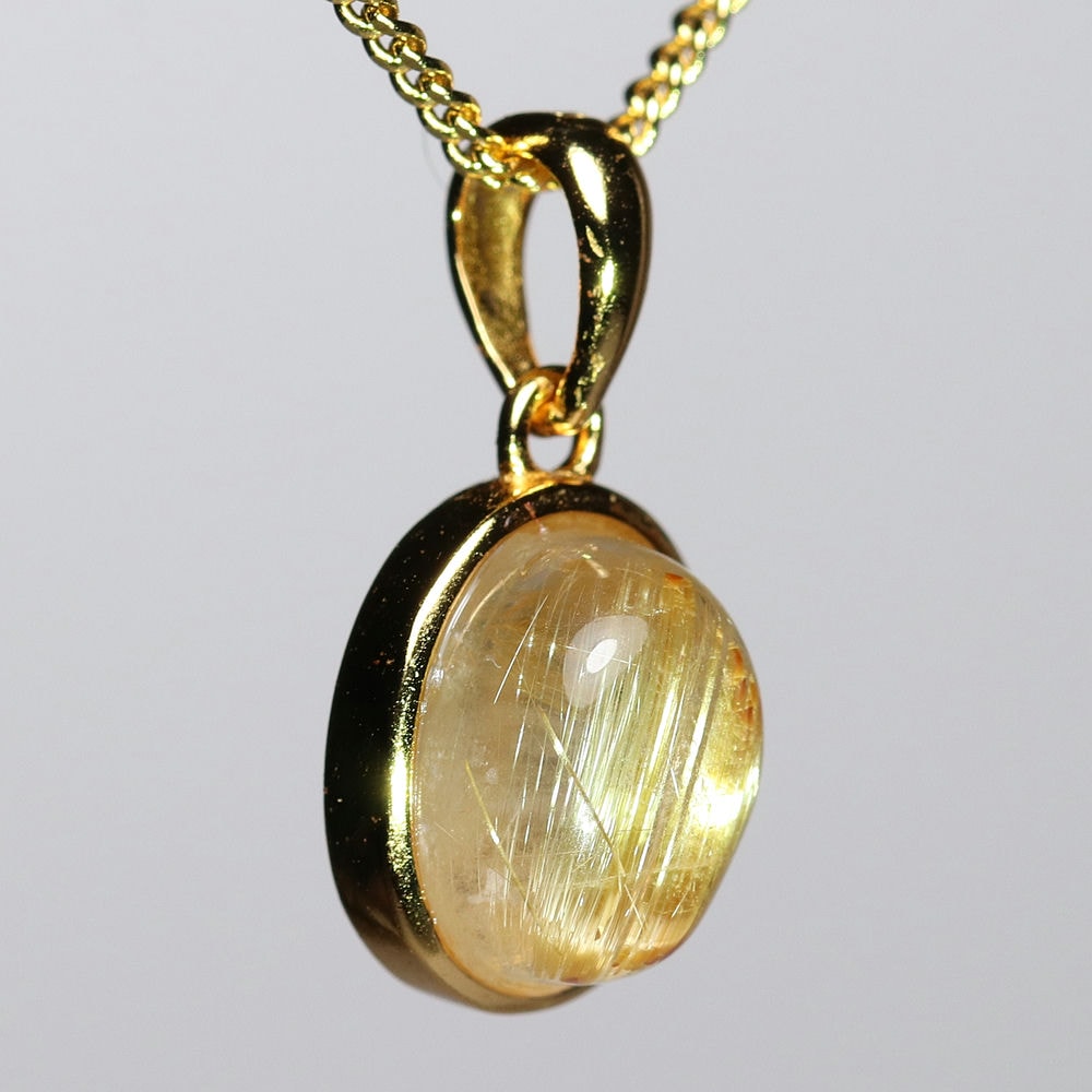 [高品質]タイチンルチルクォーツペンダントトップ/キャッツアイ(シルバー925/イエローゴールドカラー)¥7,800クイックガイド送料