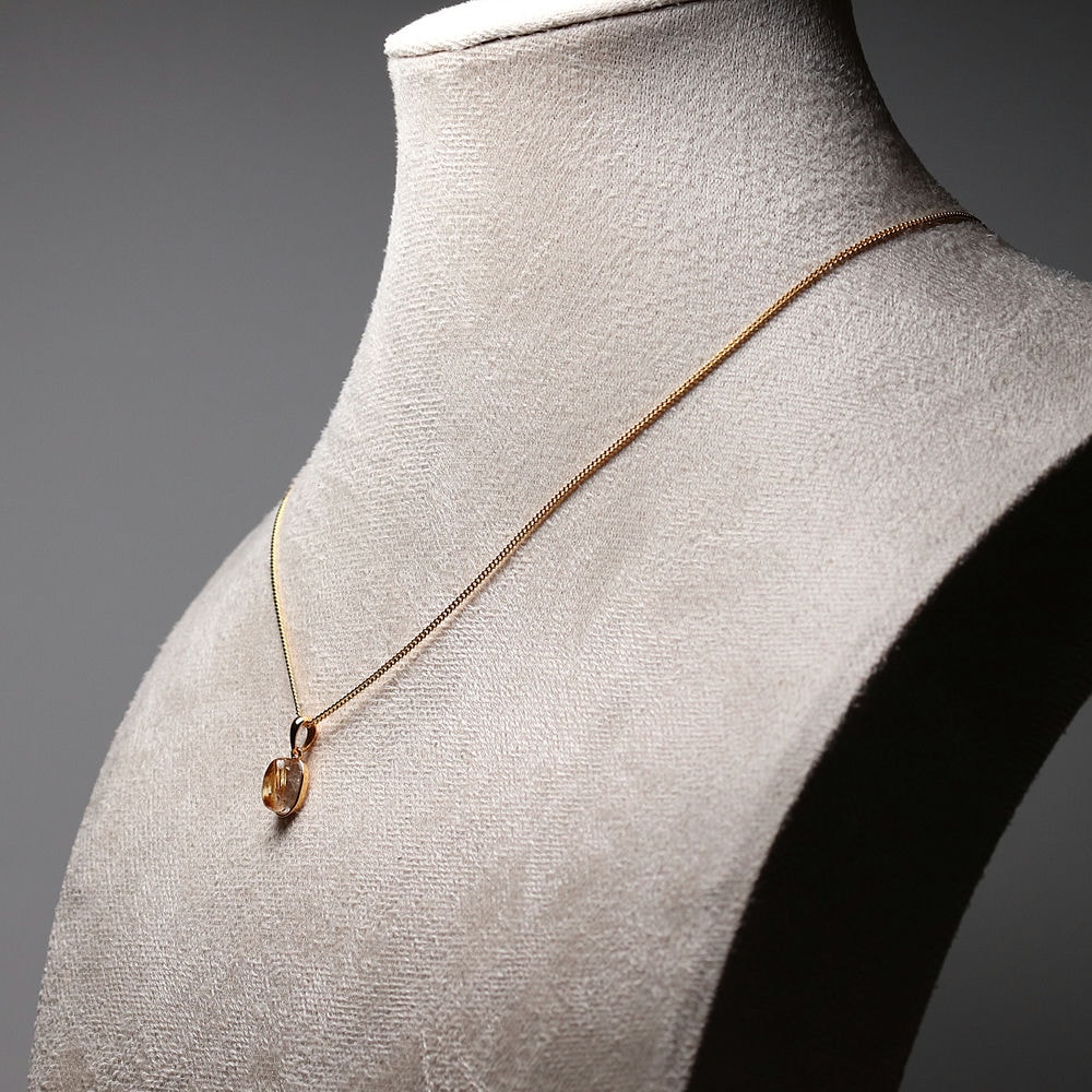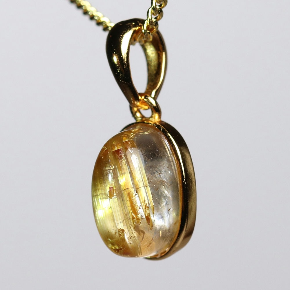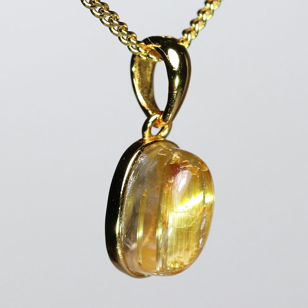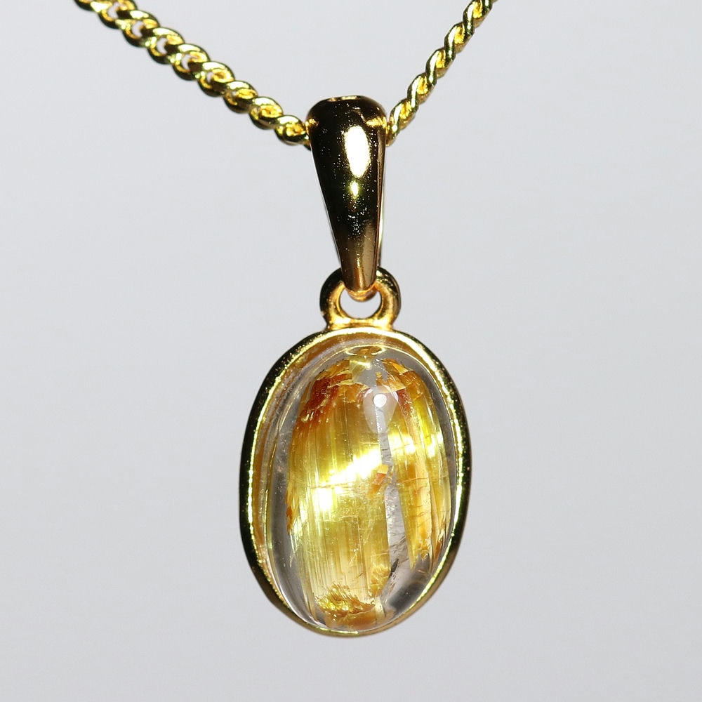 オーバルシェイプの美しいタイチンルチルクォーツルースを使用した、【高品質】ペンダントトップ(ネックレストップ)でございます。
