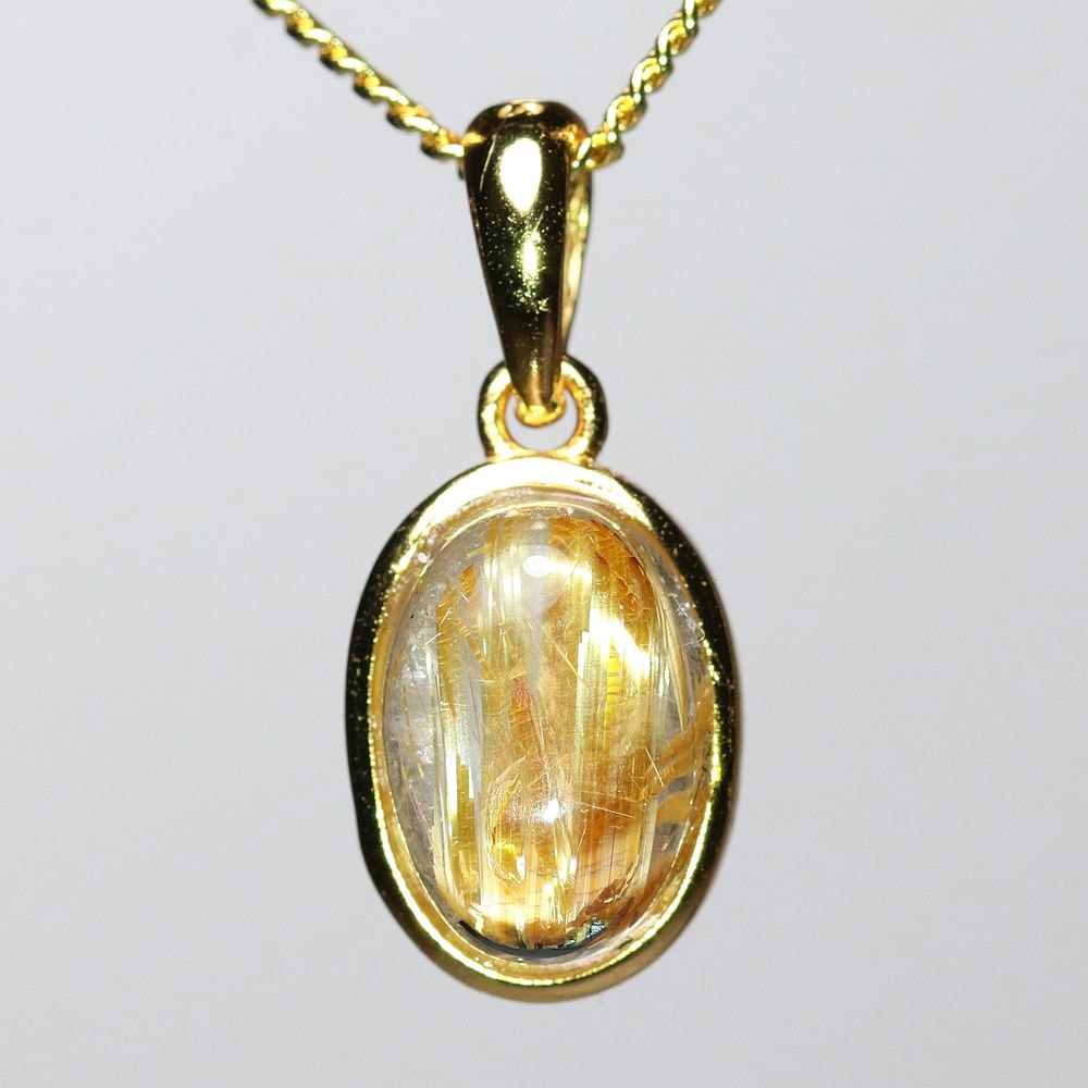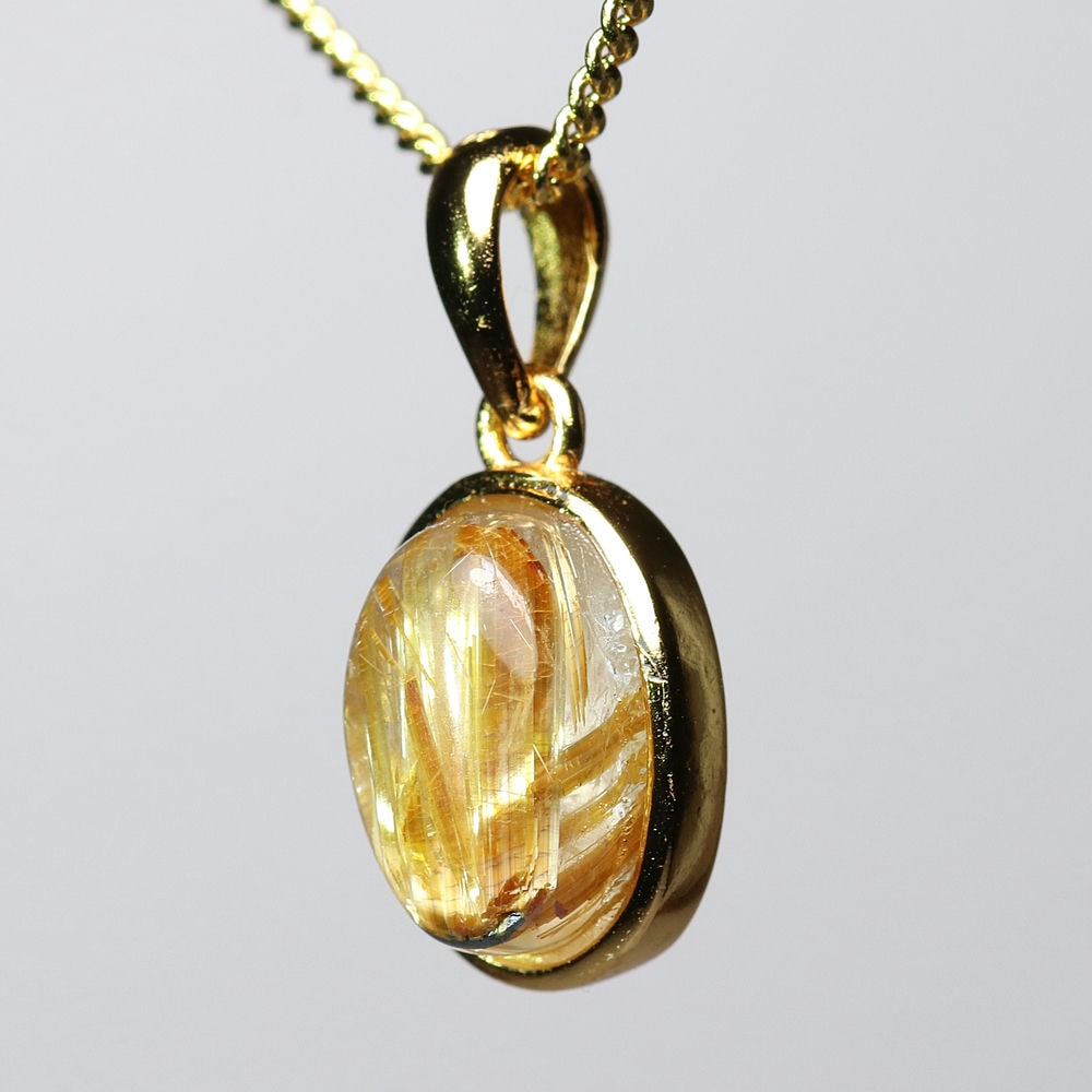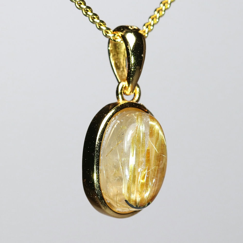 オーバルシェイプの美しいタイチンルチルクォーツルースを使用した、【高品質】ペンダントトップ(ネックレストップ)でございます。