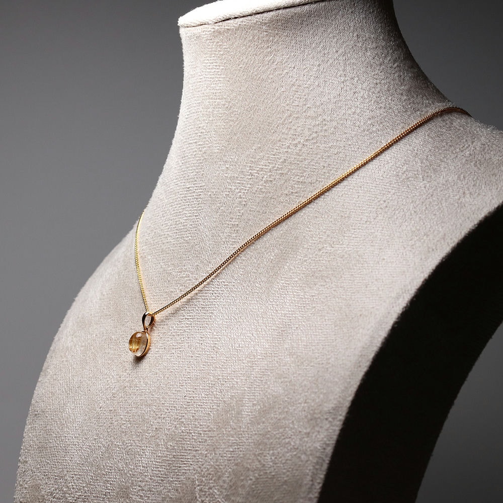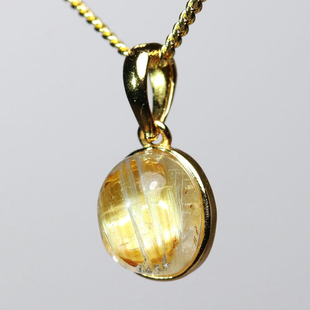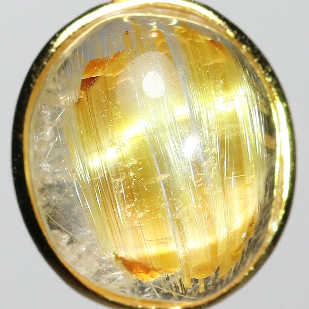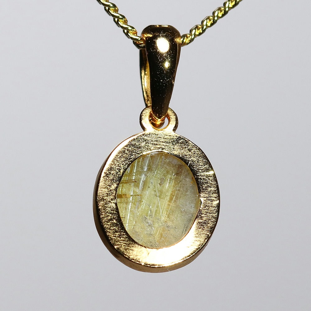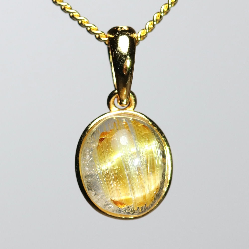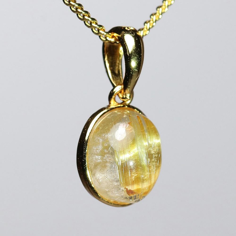 オーバルシェイプの美しいタイチンルチルクォーツルースを使用した、【高品質】ペンダントトップ(ネックレストップ)でございます。