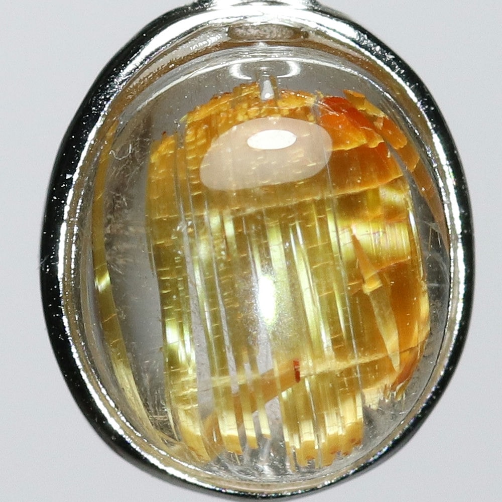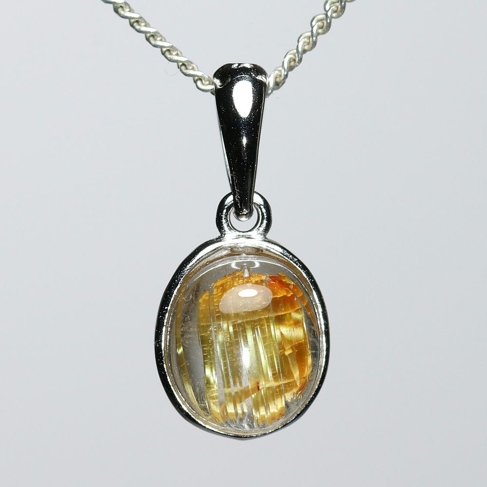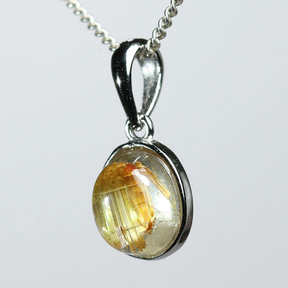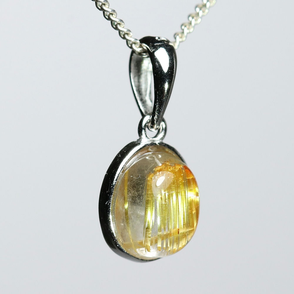オーバルシェイプの美しいタイチンルチルクォーツルースを使用した、【高品質】ペンダントトップ(ネックレストップ)でございます。