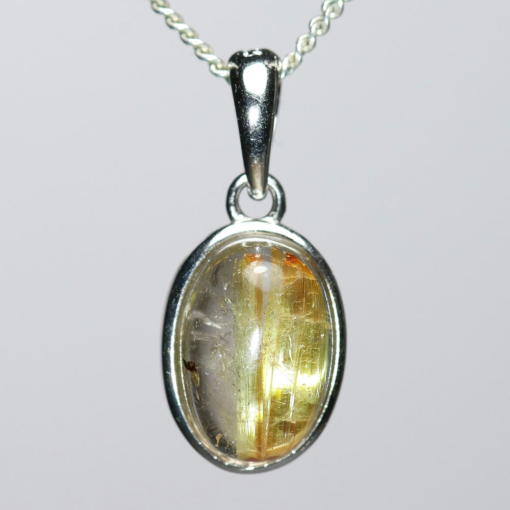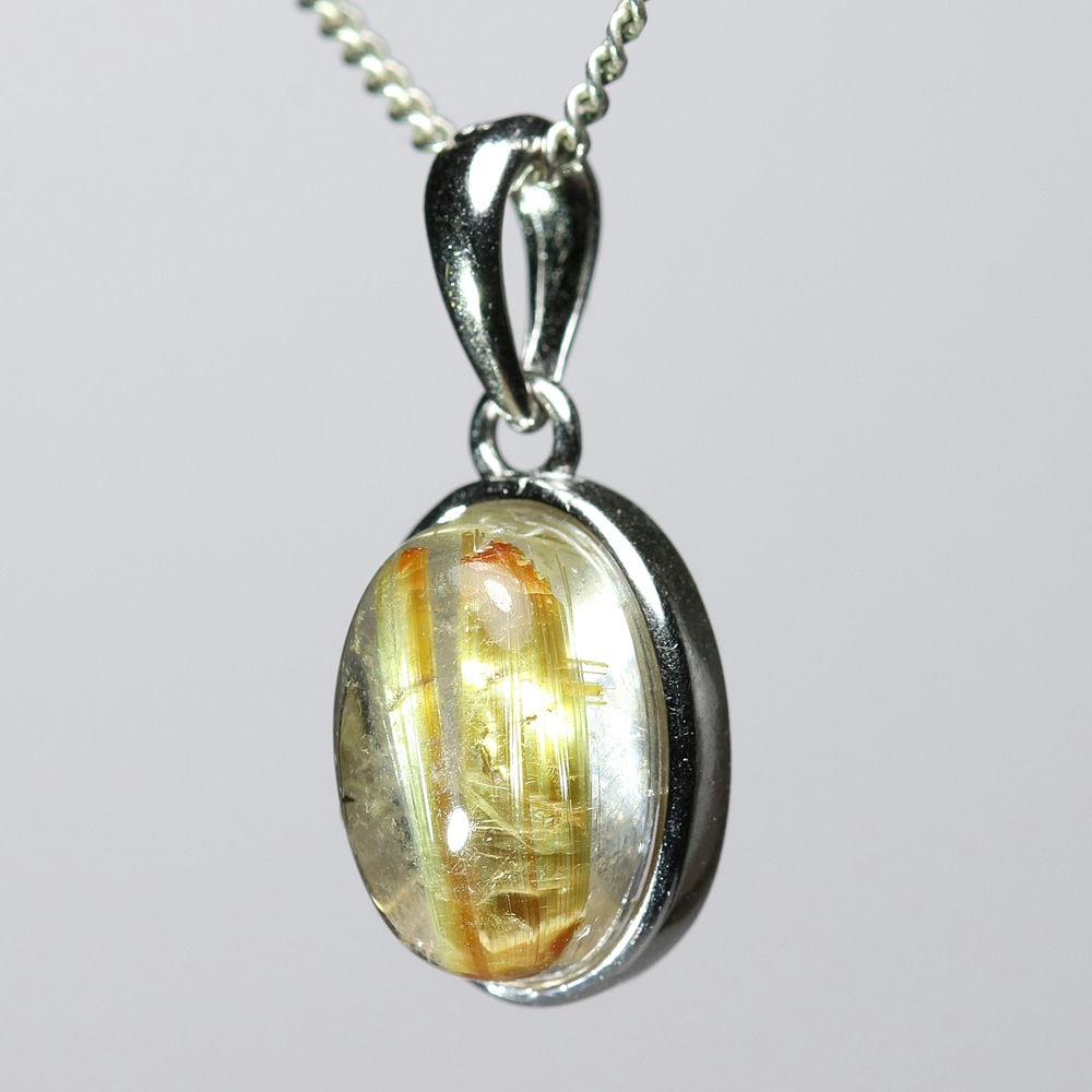 オーバルシェイプの美しいタイチンルチルクォーツルースを使用した、【高品質】ペンダントトップ(ネックレストップ)でございます。