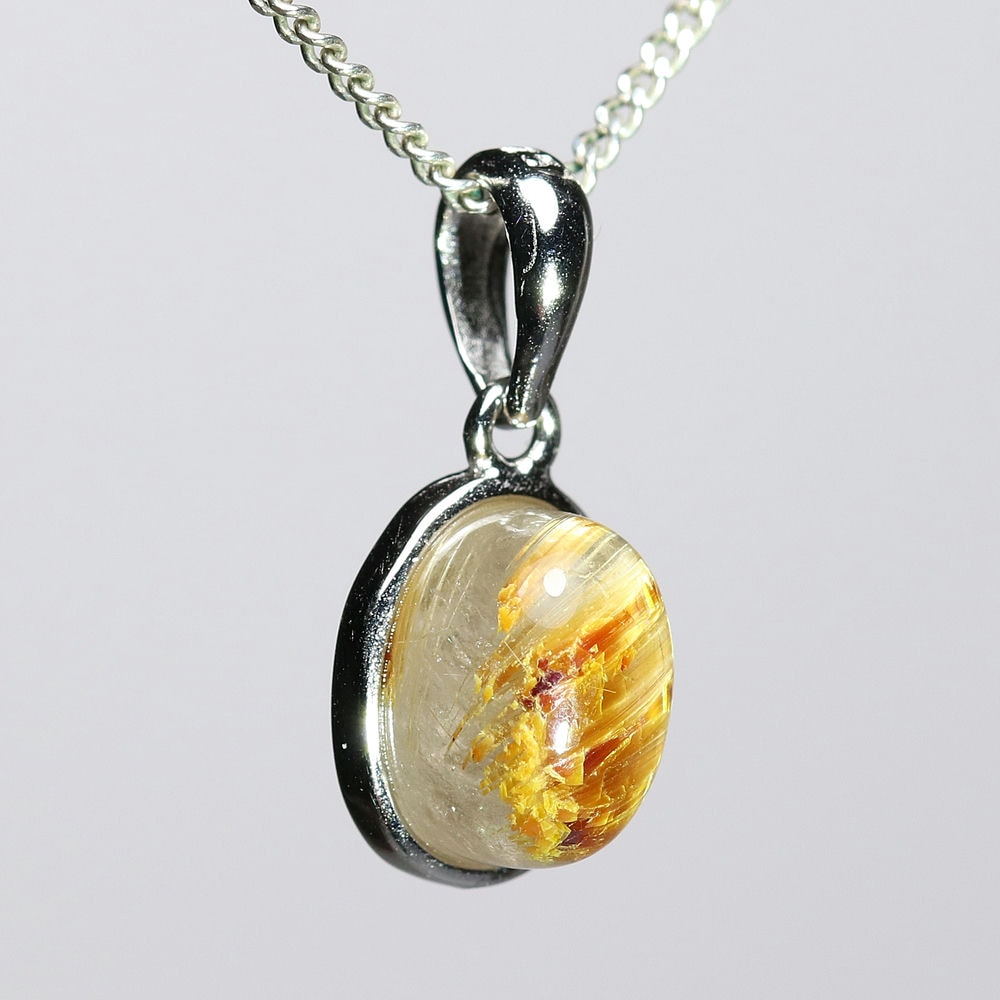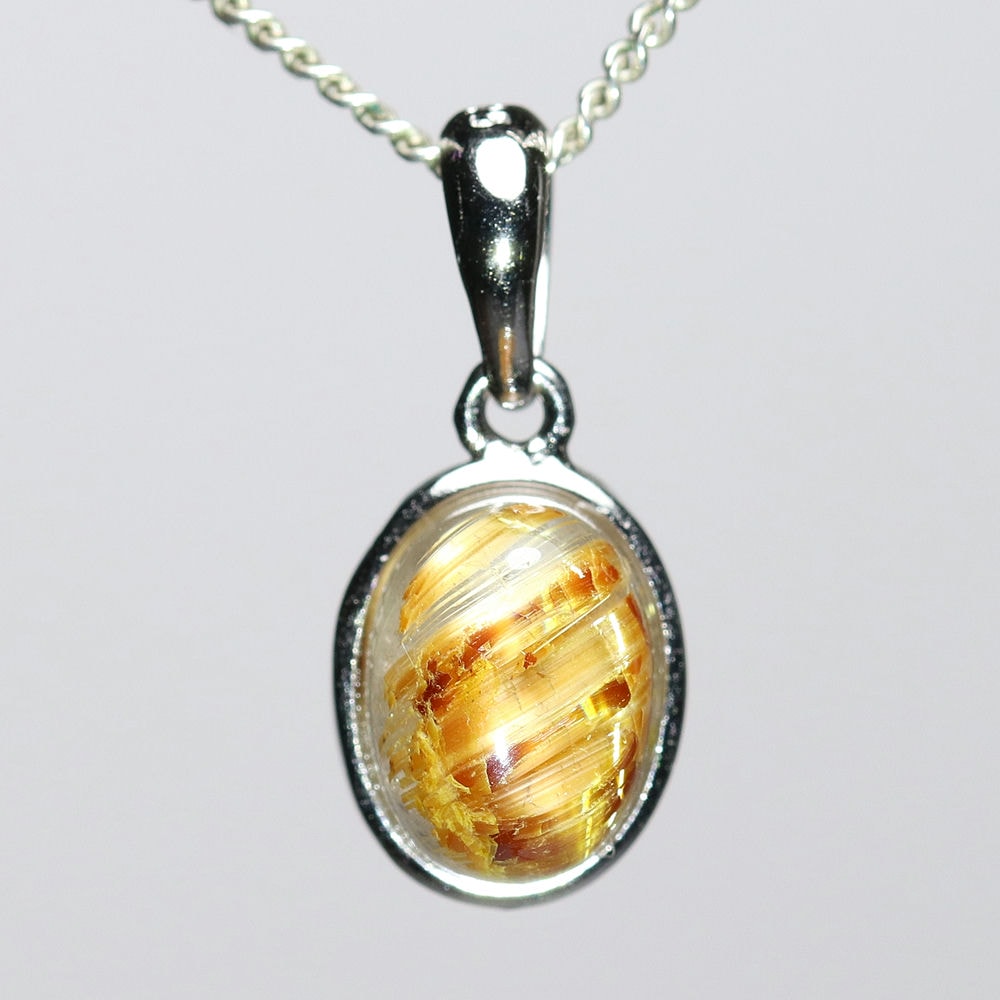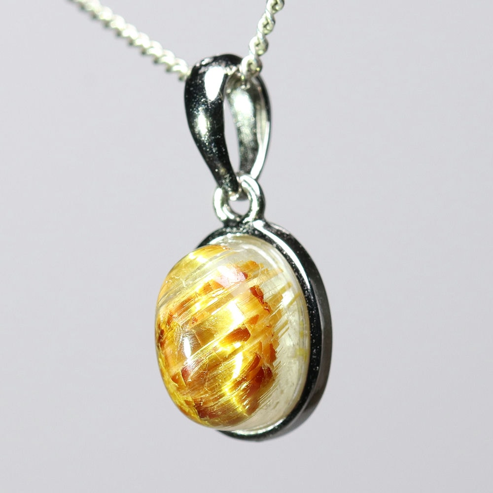 オーバルシェイプの美しいタイチンルチルクォーツルースを使用した、【高品質】ペンダントトップ(ネックレストップ)でございます。