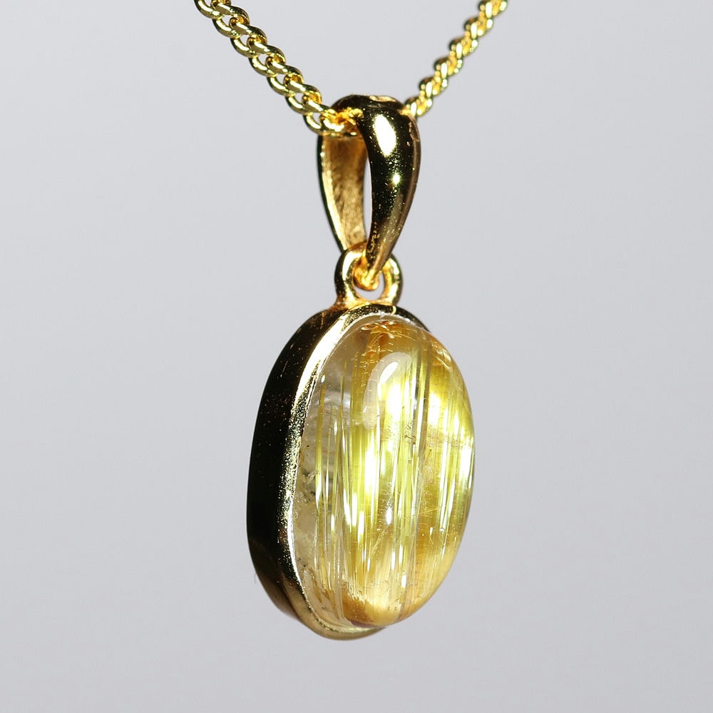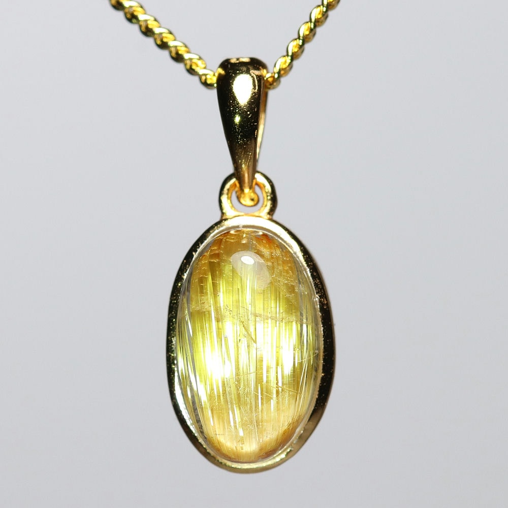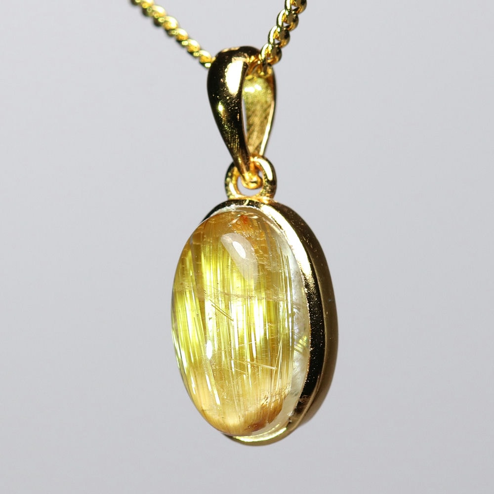 オーバルシェイプの美しいタイチンルチルクォーツルースを使用した、【高品質++】ペンダントトップ(ネックレストップ)でございます。