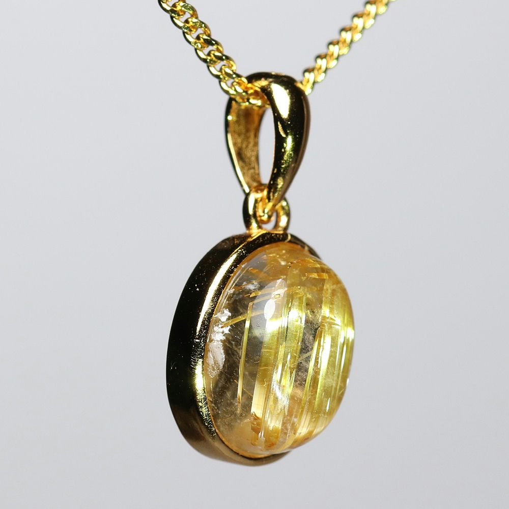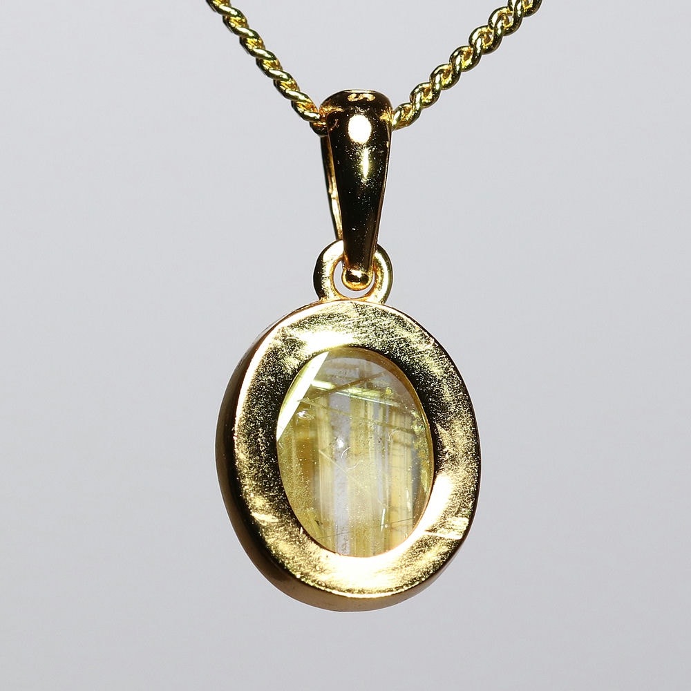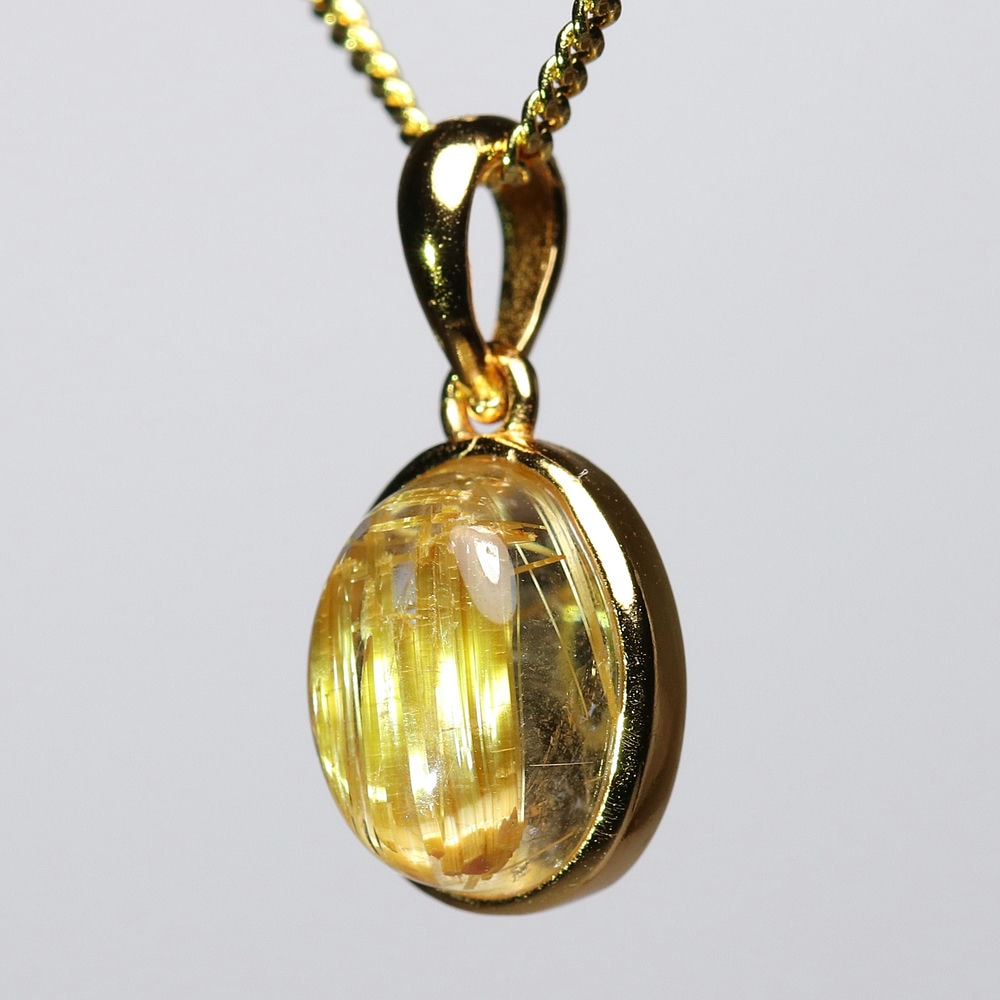 オーバルシェイプの美しいタイチンルチルクォーツルースを使用した、【高品質++】ペンダントトップ(ネックレストップ)でございます。