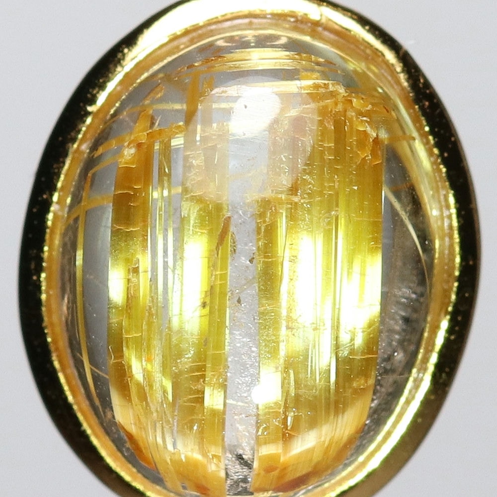 ルチルの金色に、重厚感あるゴールドフレームが上品に溶け合い、華やかで気品あふれる印象が際立つ仕上がりです。