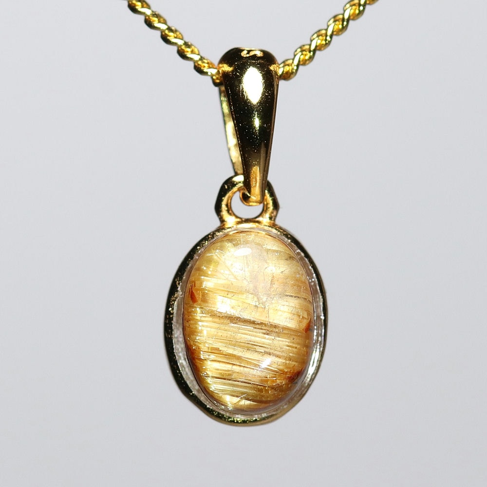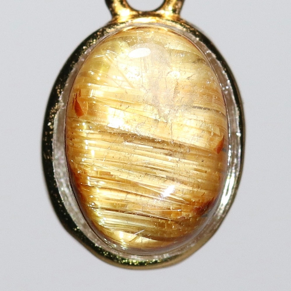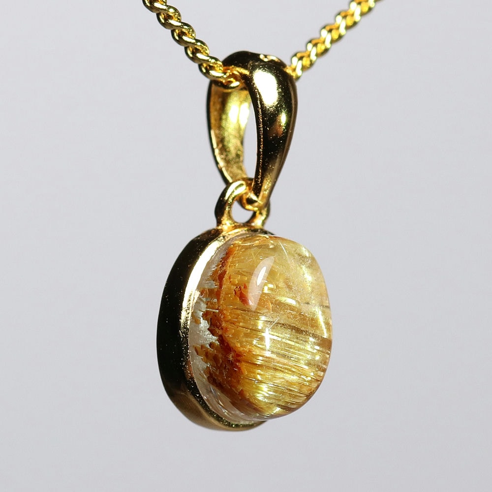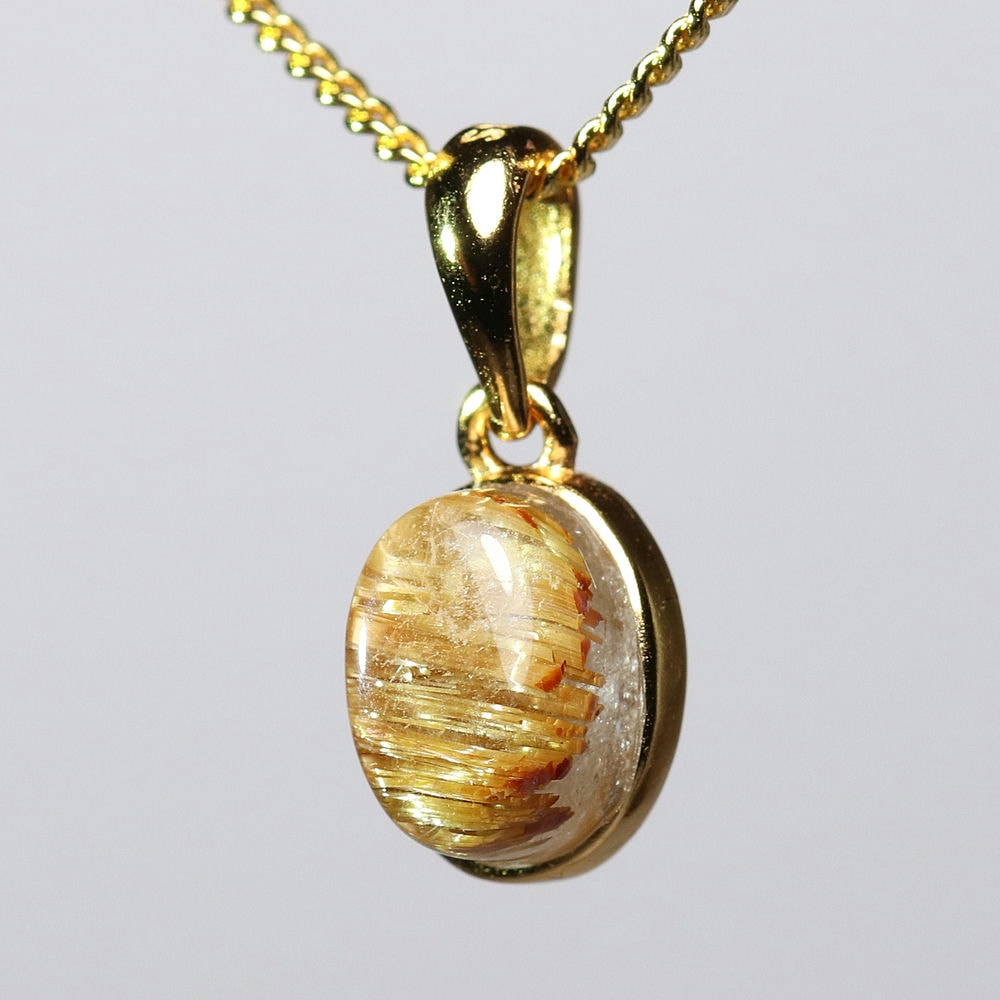 オーバルシェイプの美しいタイチンルチルクォーツルースを使用した、【高品質++】ペンダントトップ(ネックレストップ)でございます。