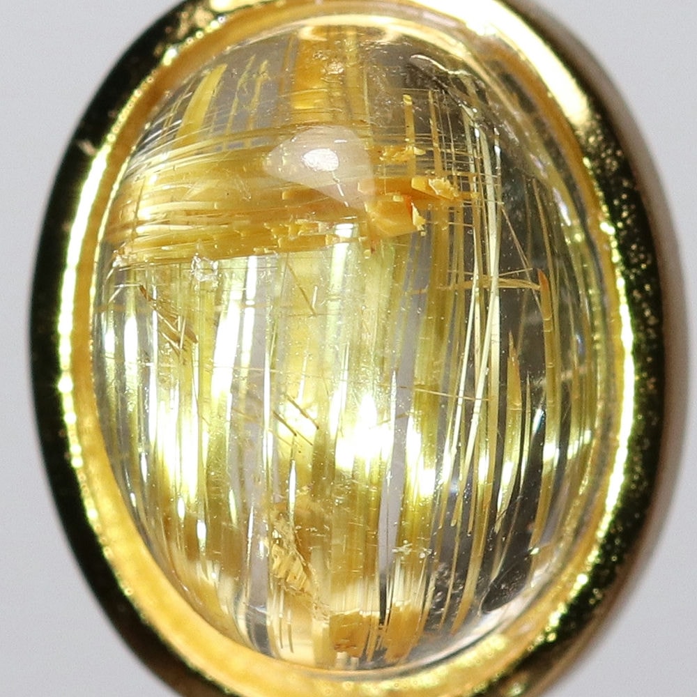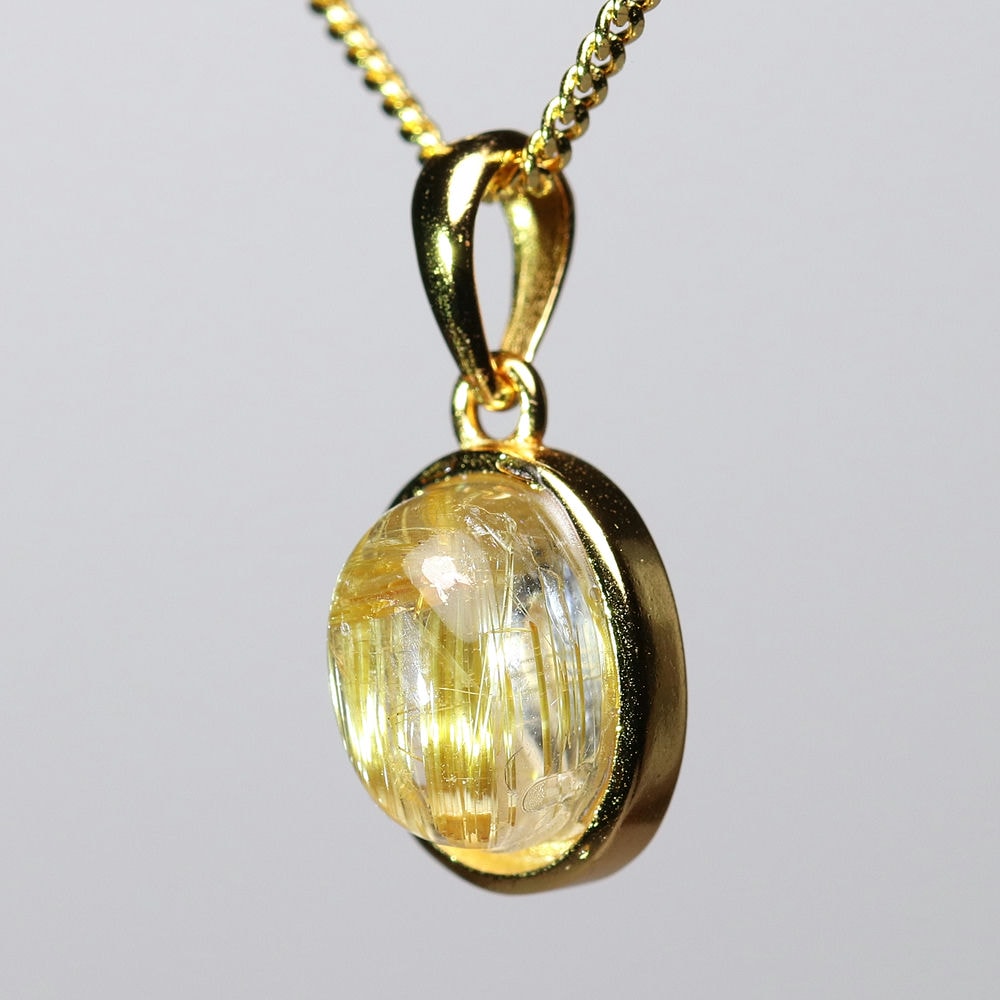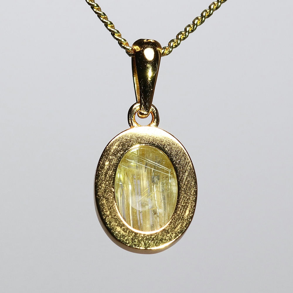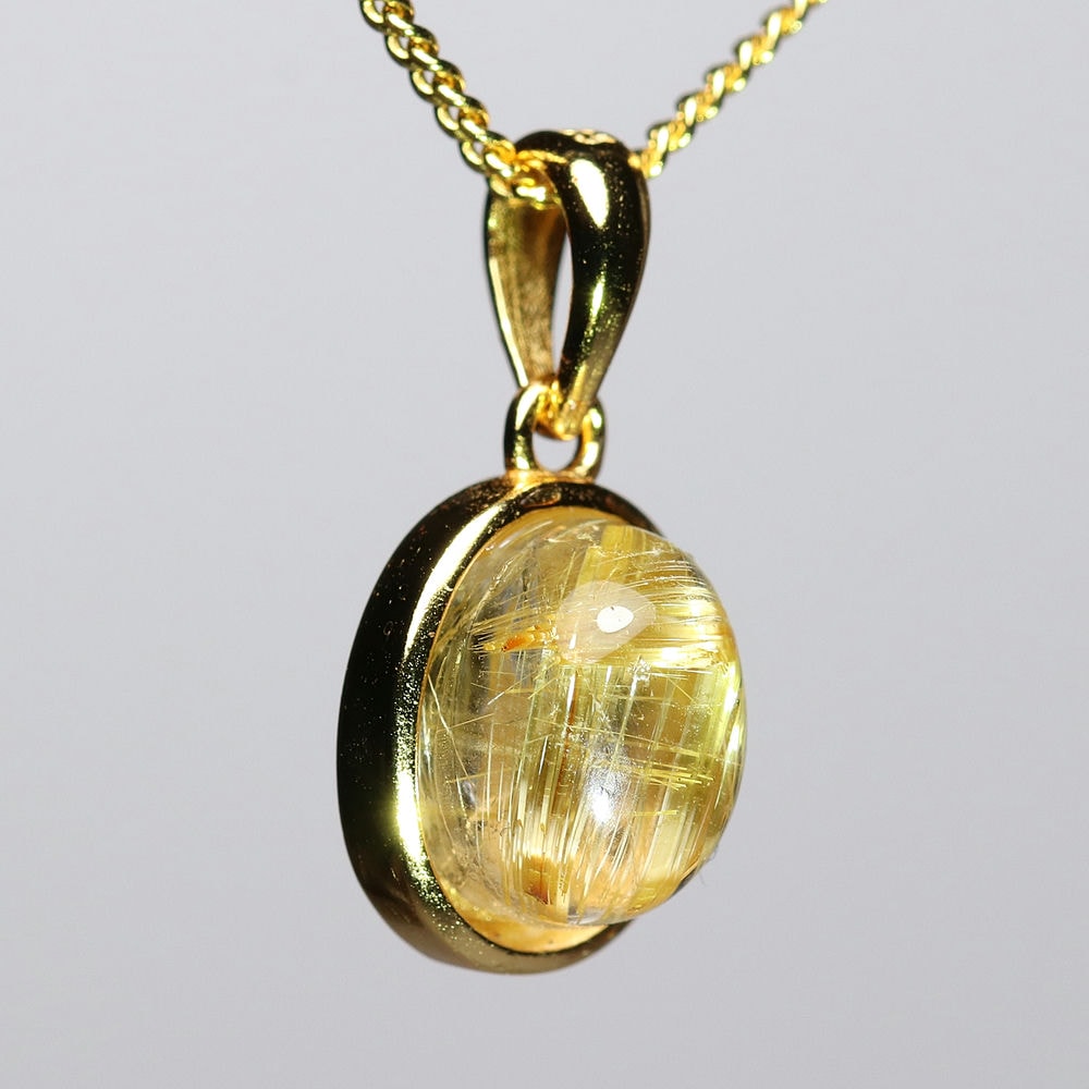 オーバルシェイプの美しいタイチンルチルクォーツルースを使用した、【高品質++】ペンダントトップ(ネックレストップ)でございます。