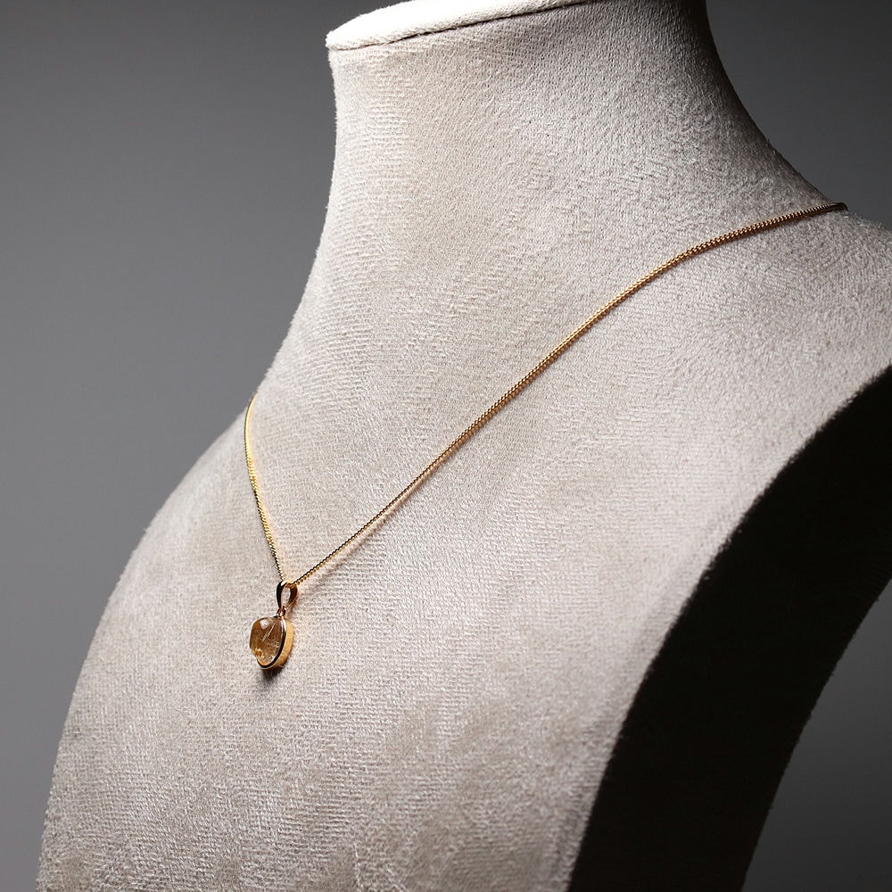 ルチルの金色に、重厚感あるゴールドフレームが上品に溶け合い、華やかで気品あふれる印象が際立つ仕上がりです。