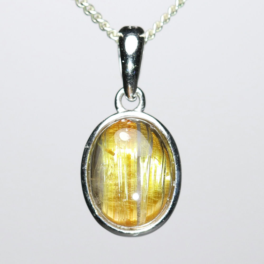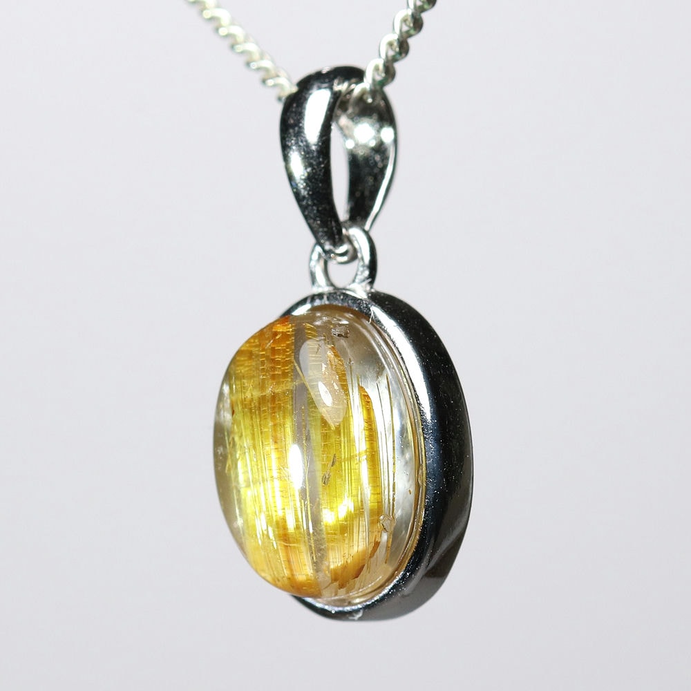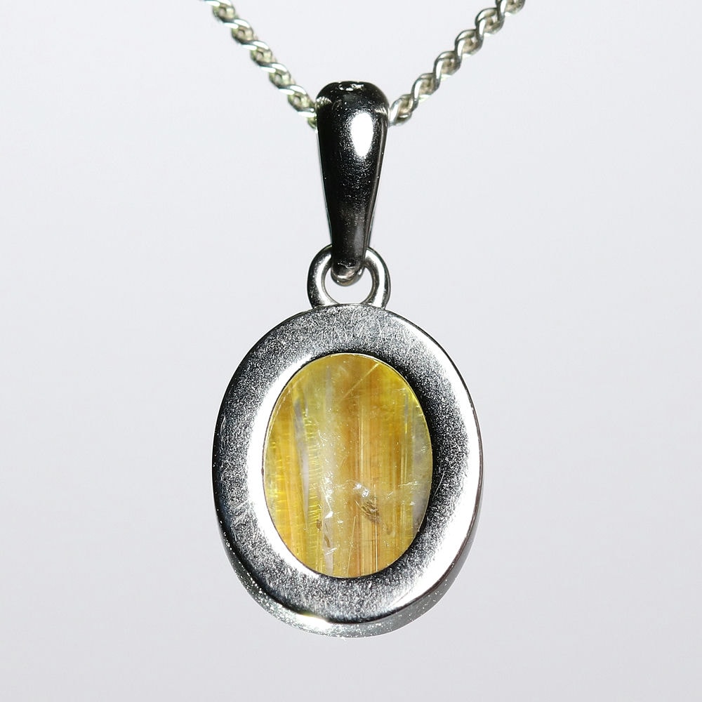 オーバルシェイプの美しいタイチンルチルクォーツルースを使用した、【高品質++】ペンダントトップ(ネックレストップ)でございます。