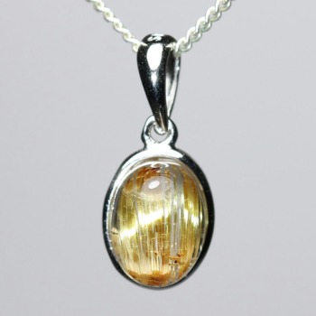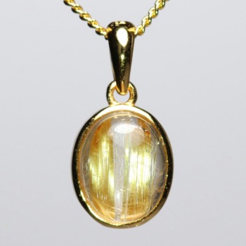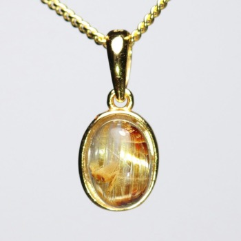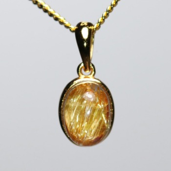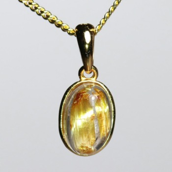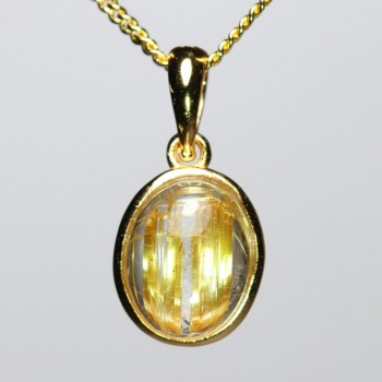 オーバルシェイプの美しいタイチンルチルクォーツルースを使用した、【高品質++】ペンダントトップ(ネックレストップ)でございます。