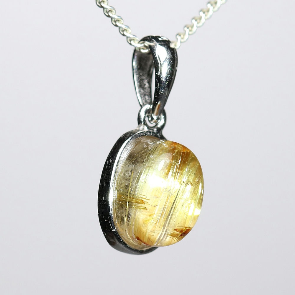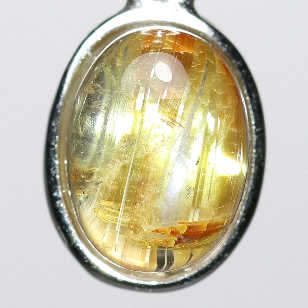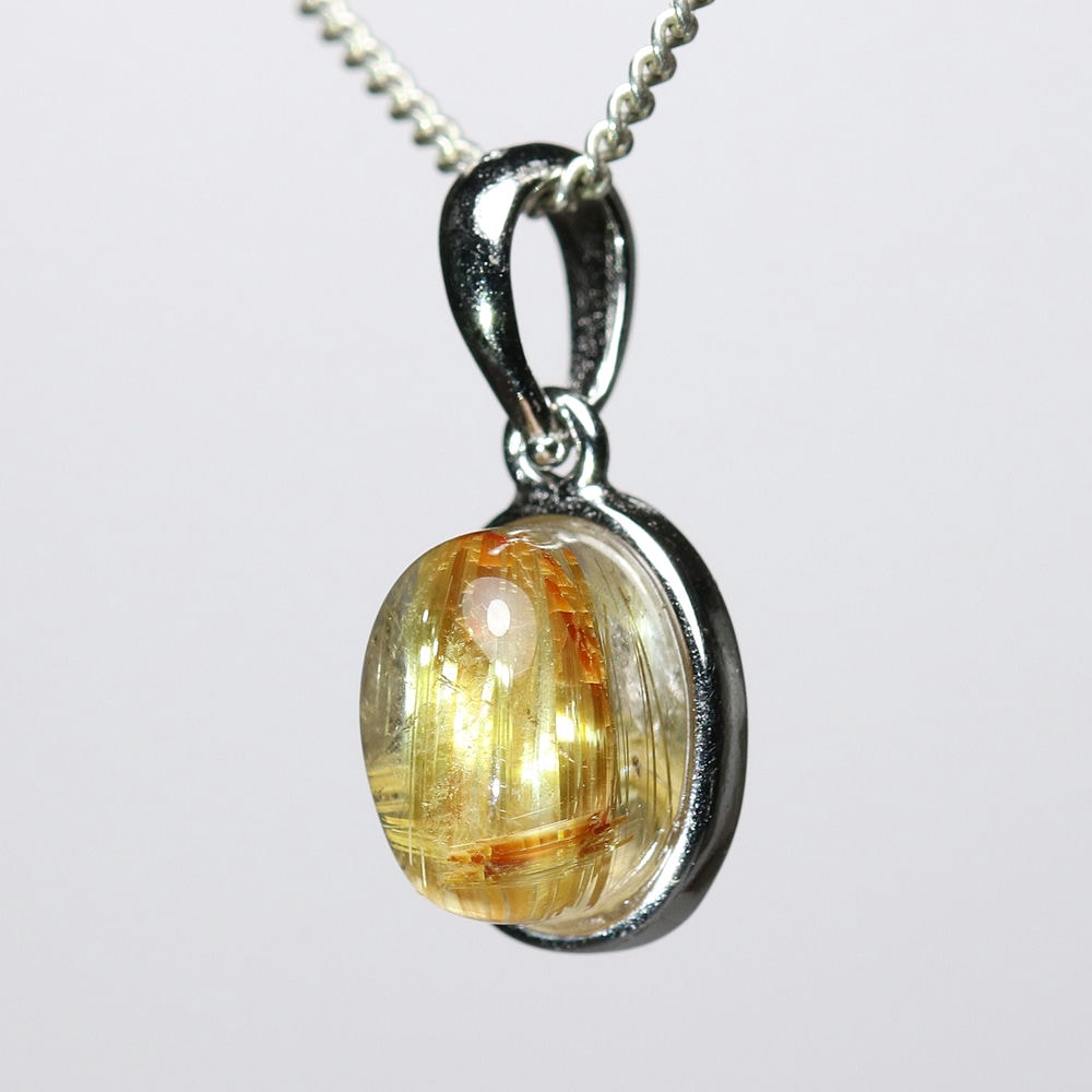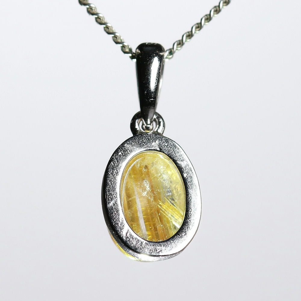 オーバルシェイプの美しいタイチンルチルクォーツルースを使用した、【高品質++】ペンダントトップ(ネックレストップ)でございます。