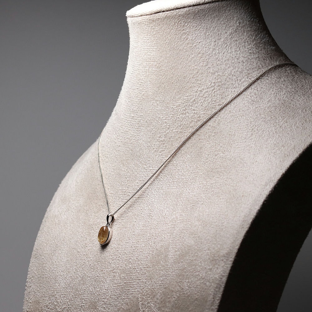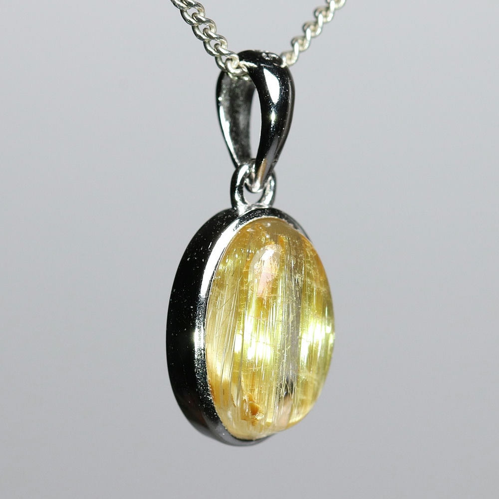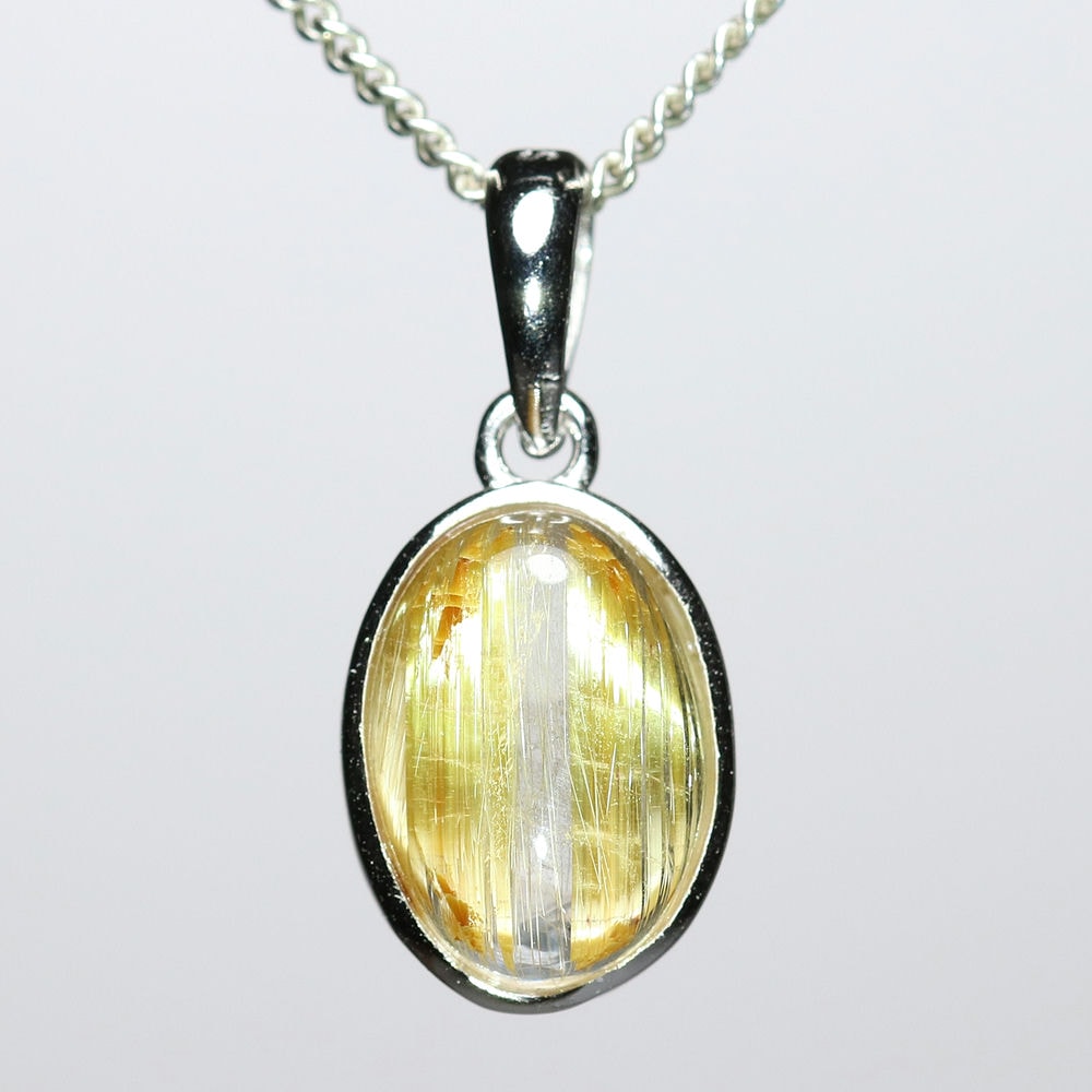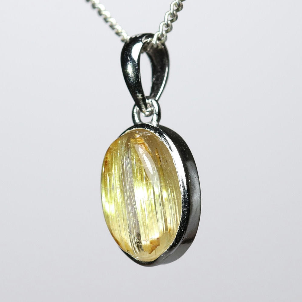 オーバルシェイプの美しいタイチンルチルクォーツルースを使用した、【高品質++】ペンダントトップ(ネックレストップ)でございます。