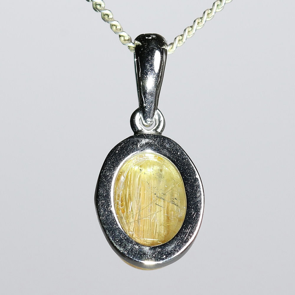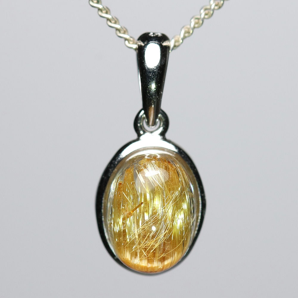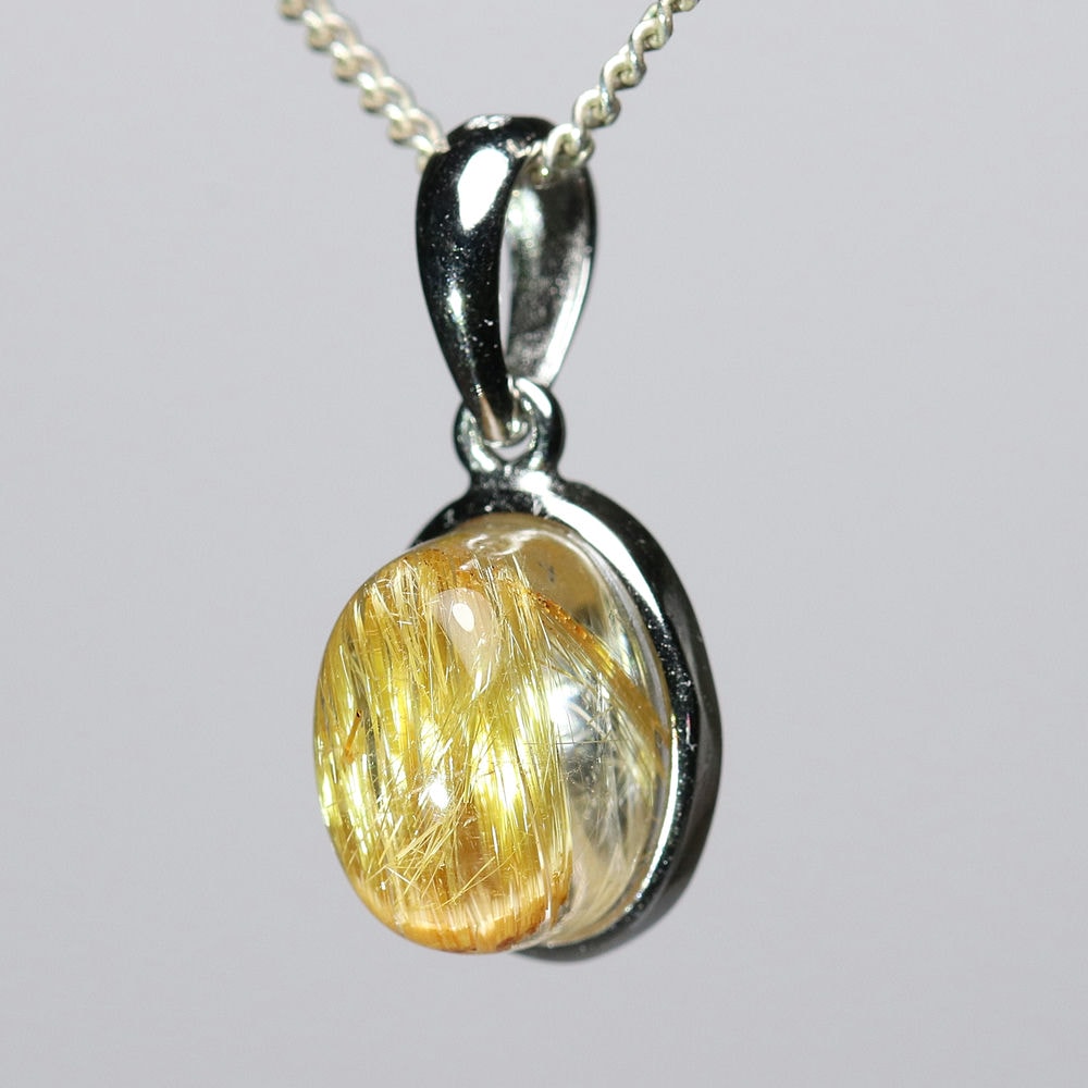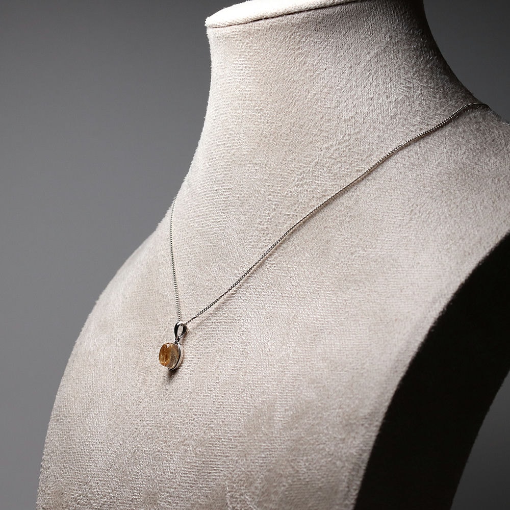 オーバルシェイプの美しいタイチンルチルクォーツルースを使用した、【高品質++】ペンダントトップ(ネックレストップ)でございます。
