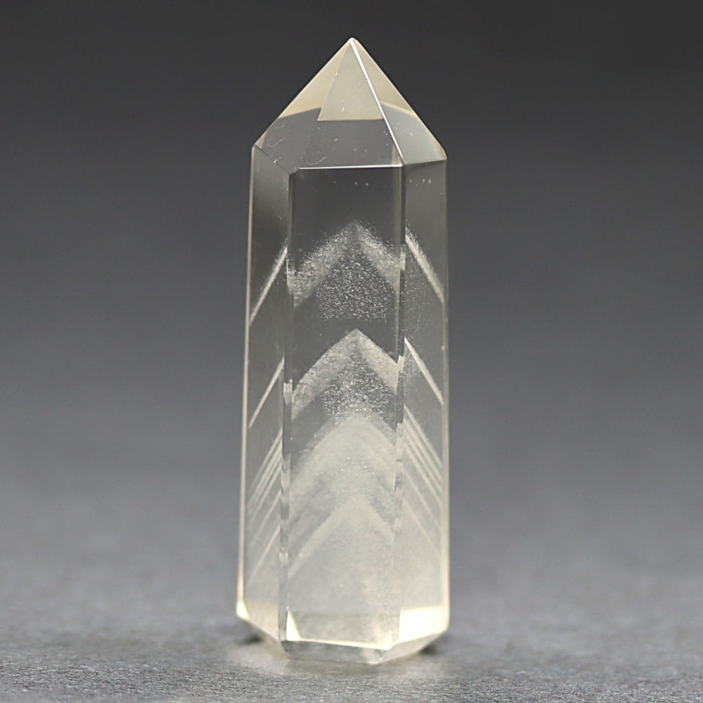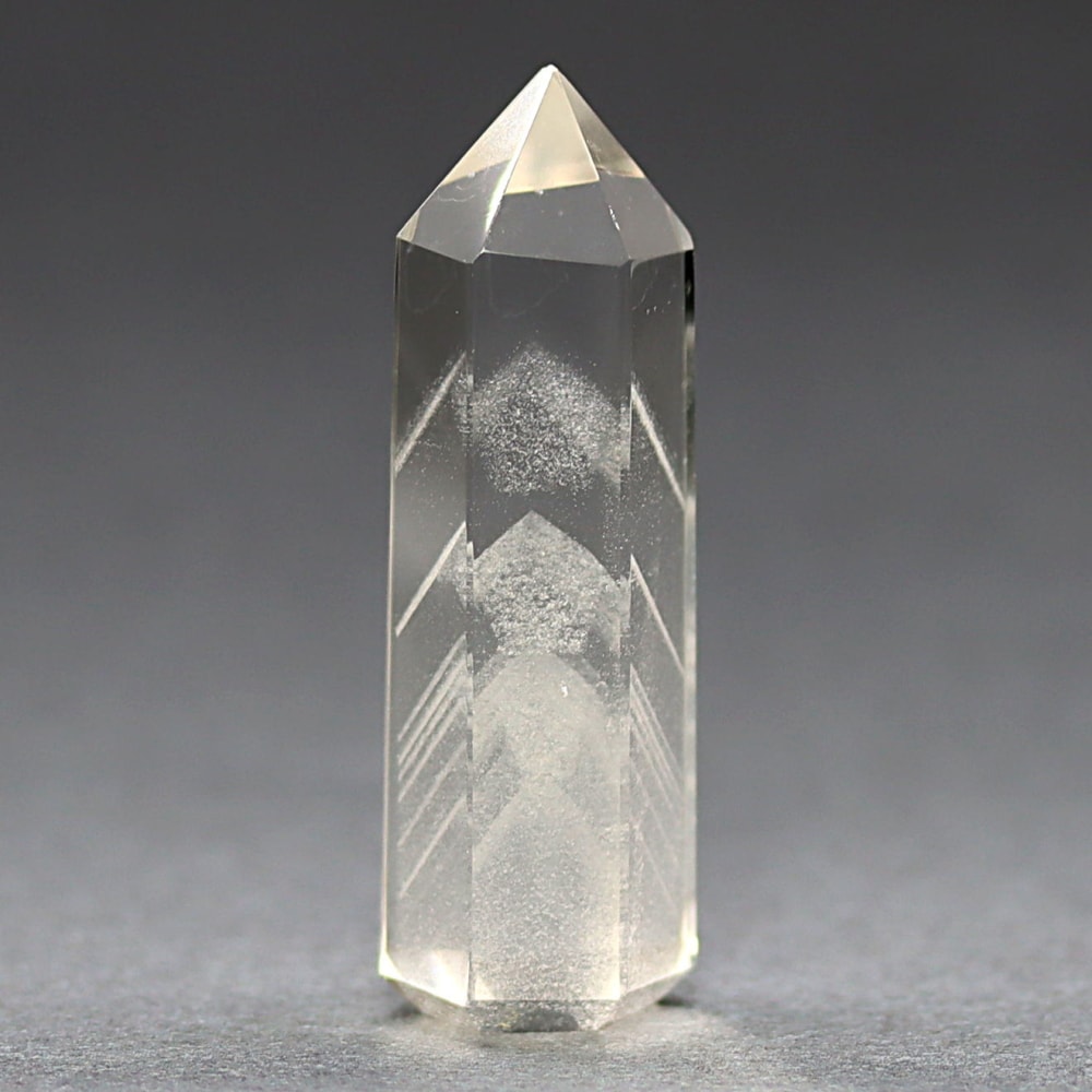 ご覧のお品は、美しいホワイトファントムクォーツを削り出し、洗練されたディテールに仕上げたポリッシュポイント(磨き石)でございます。