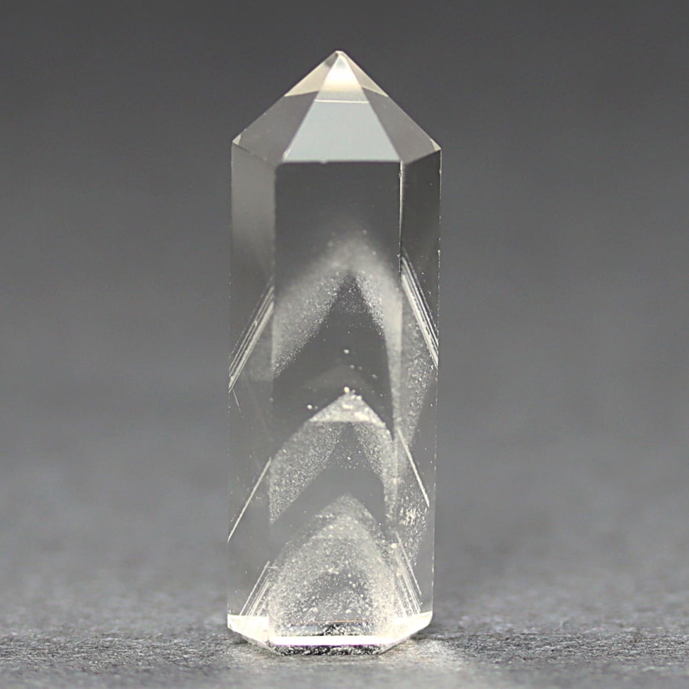 その結果、水晶内部には幻想的な景観が描かれ、まるで雪山を閉じ込めたかのような神秘的な美しさを生み出すことがあります。