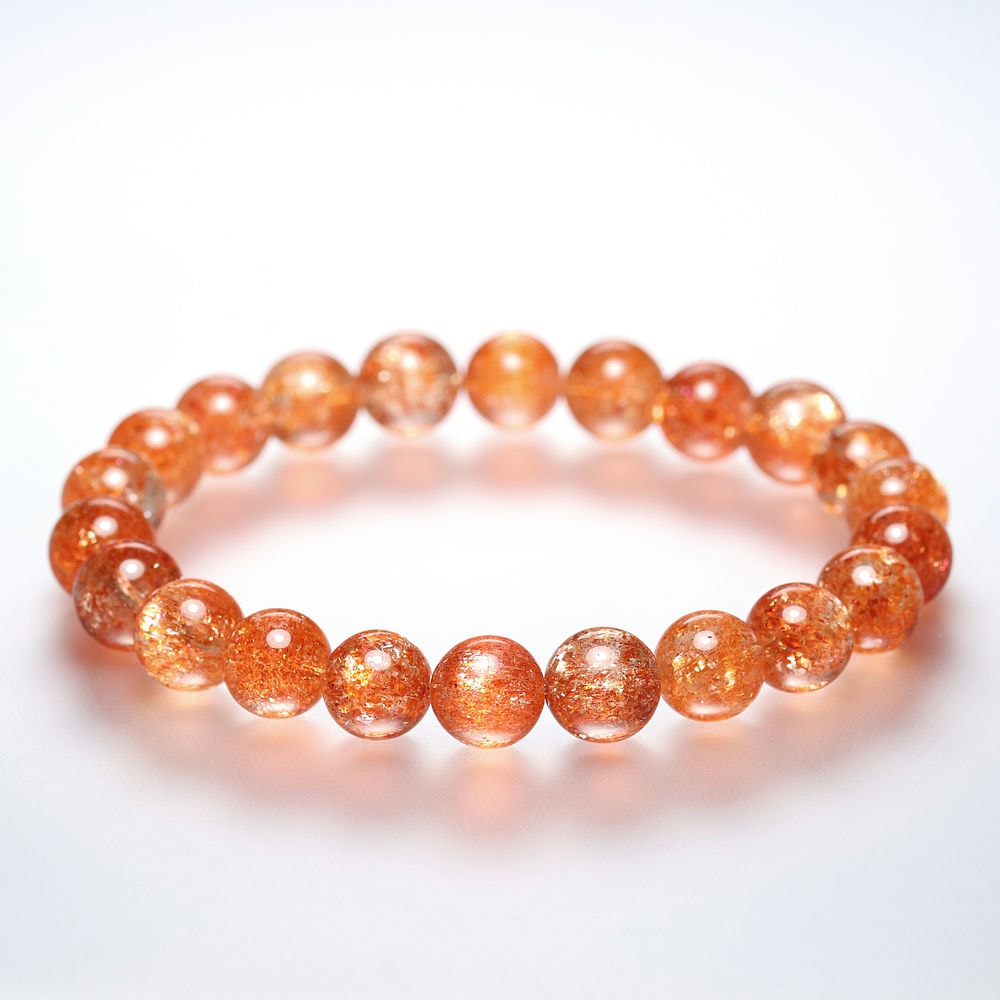 [高品質++]タンザニア産サンストーンブレスレット(約8.5mm玉)¥108,000クイックガイド送料