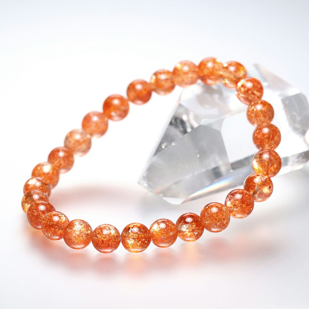 サンストーンは持ち主の不安を和らげ、心を明るく照らしてくれる強いエネルギーを持つとも云われており、世界的に人気の天然石ブレスレットです。